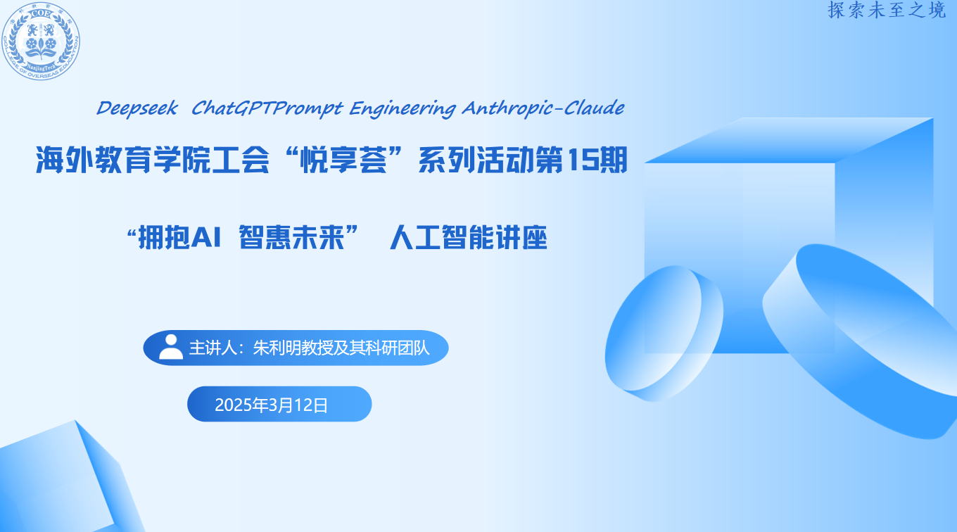 3月12日下午,太阳成集团tyc234cc第15期“悦享荟”专题讲座在明远楼102会议室精彩开讲。本期活动特邀公司朱利明教授及其科研团队,为全体教职工带来了主题为“拥抱AI,智惠未来”的人工智能专题讲座。