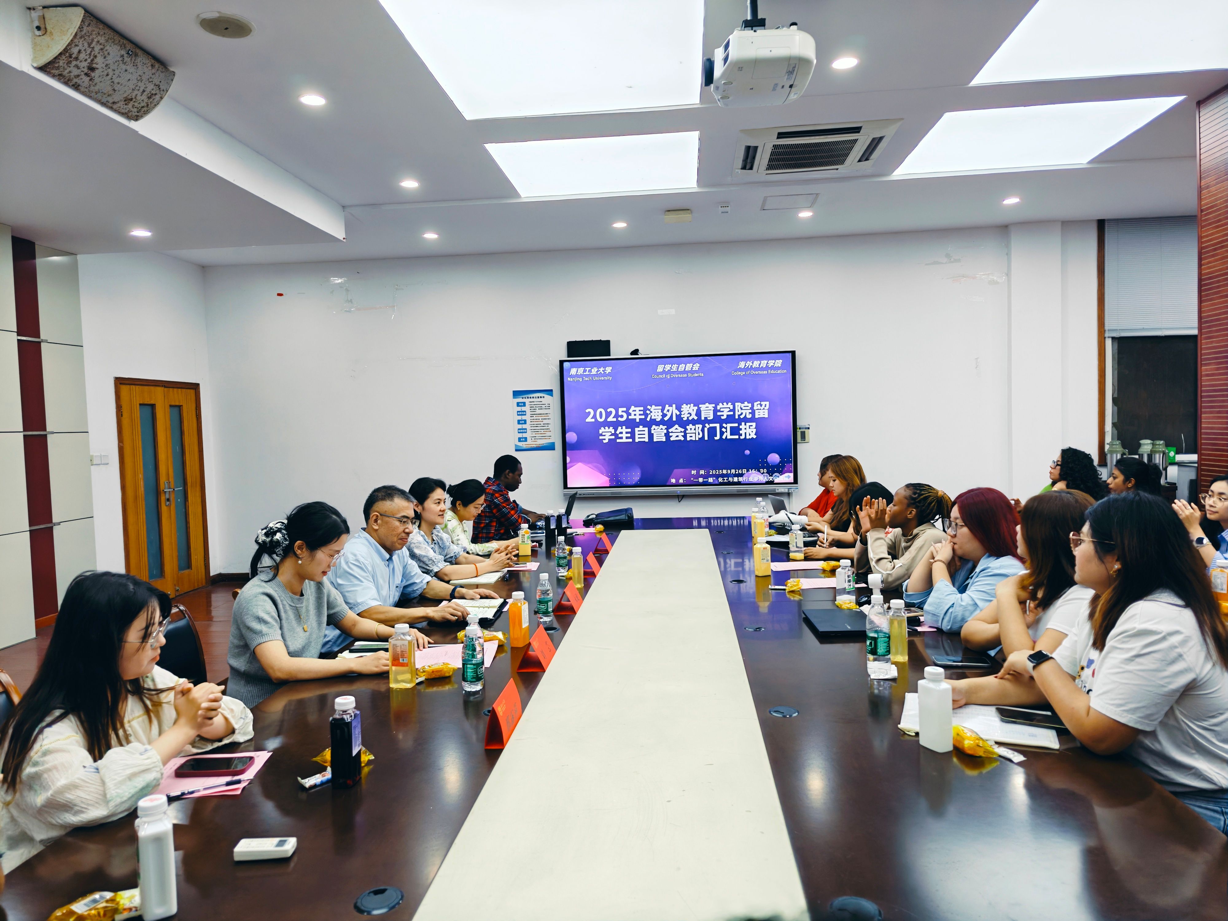 926日下午4点,太阳成集团tyc234cc在明远楼102会议室举办“书记经理与您有约”2025年第六期之职工自管会阶段性工作汇报会。公司党总支书记万永敏、副经理朱丹、留管办全体老师及自管会六个部门四十余名职工骨干参会,会议由职工自管会主席多哥籍TETE DANIEL KOUDAMA(丁以理)同学主持。