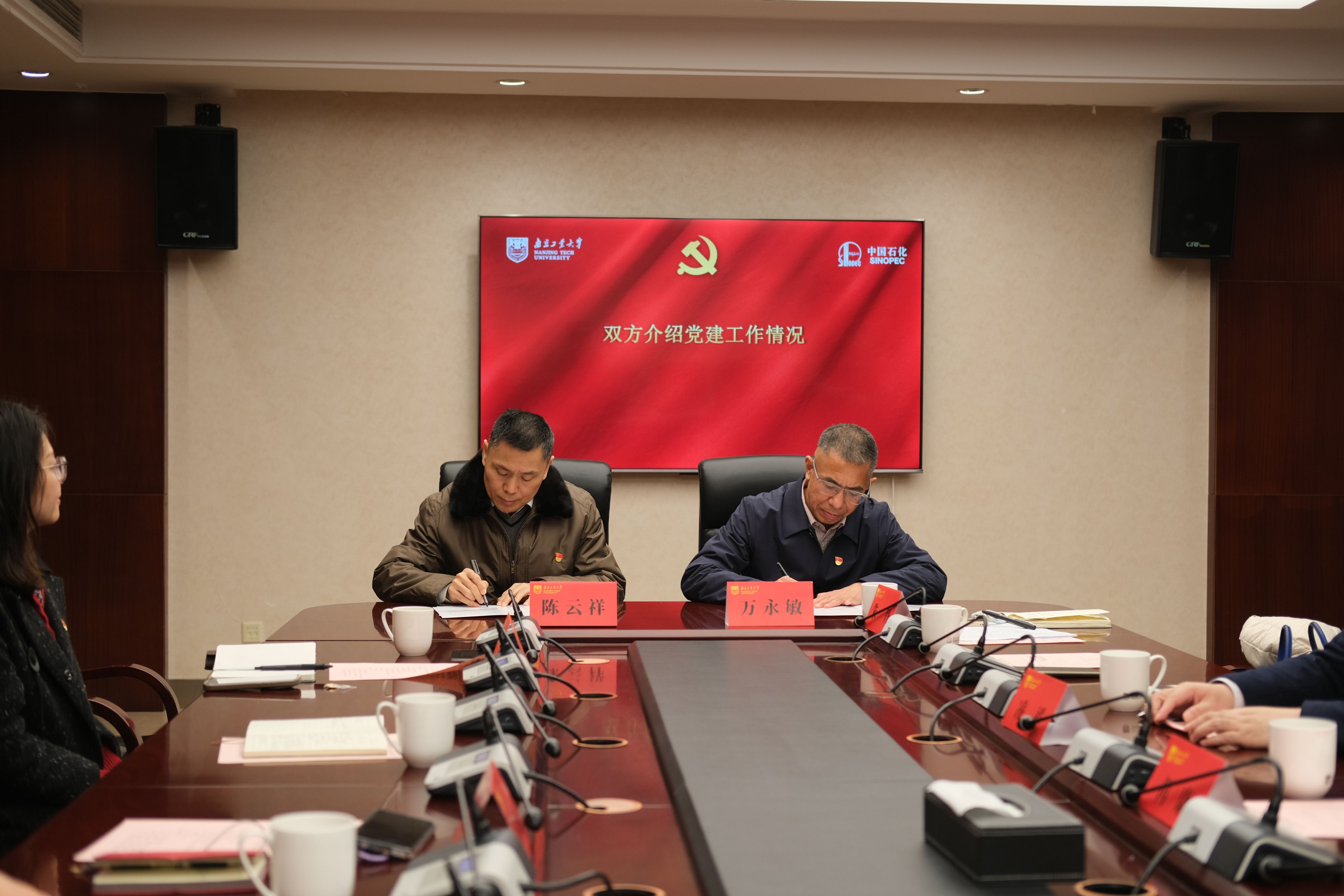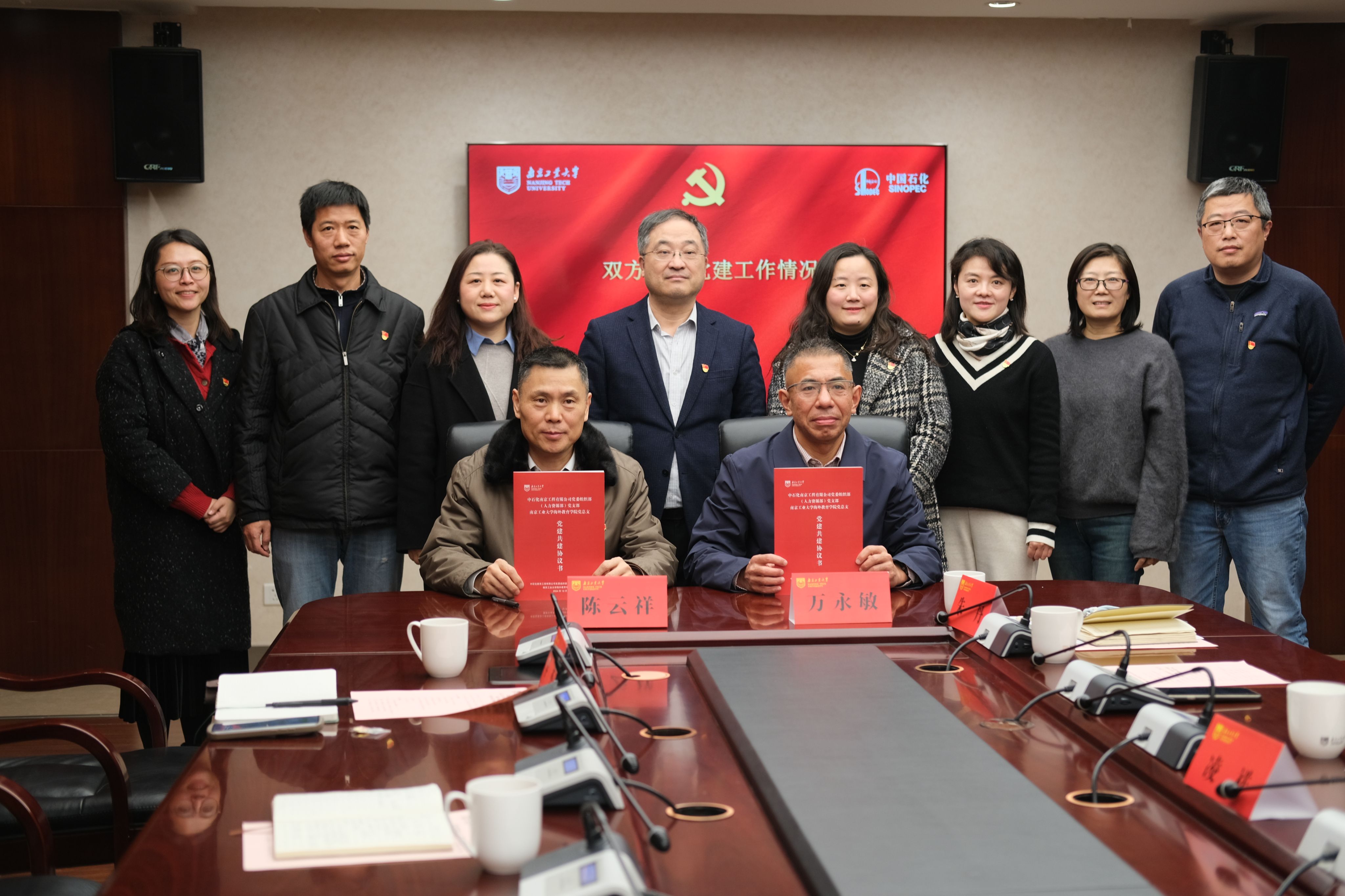 公司党总支书记万永敏和中石化南京工程有限公司党委组织部(人力资源部)党支部书记陈云祥分别介绍了双方的党建工作和特色项目建设情况,校企双方思想高度统一、达成一致,以党建引领促进业务工作,携手共建深化合作,双方签署了党建共建协议书。