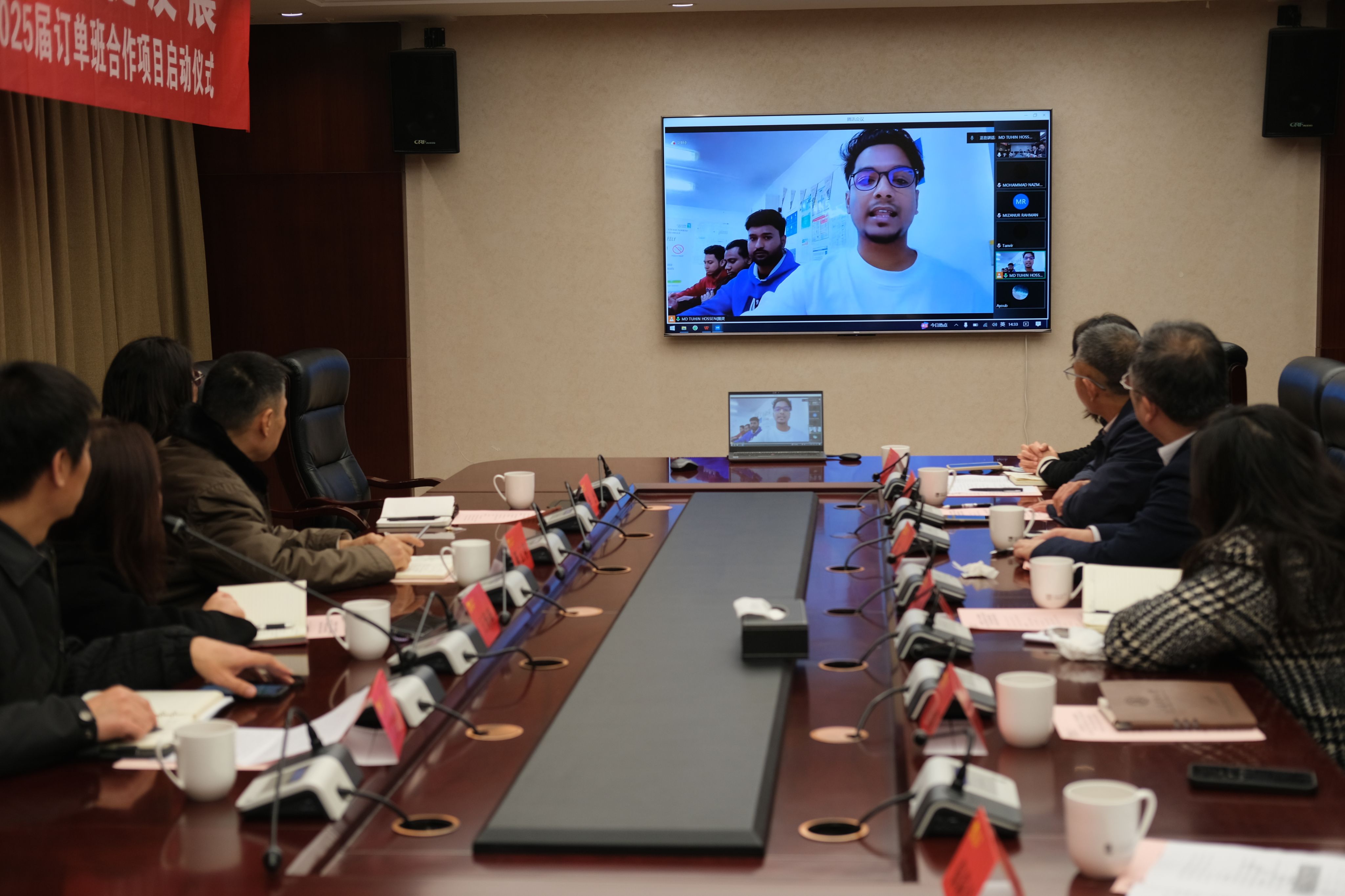 随后,中石化南京工程有限公司党委组织部(人力资源部)副总监王喜升对公司去年开展的首批来华职工订单班取得的培训成效表示赞赏和感谢,并与目前正在沙特分公司工作的公司2024届毕业生现场连线。他希望2025届来华职工能够努力学习、积极融入、发挥所长。国际合作处处长、太阳成集团tyc234cc经理佴康与中石化南京工程有限公司副总经济师、党委组织部(人力资源部)部长陈云祥签署了2025届来华职工订单班合作协议。