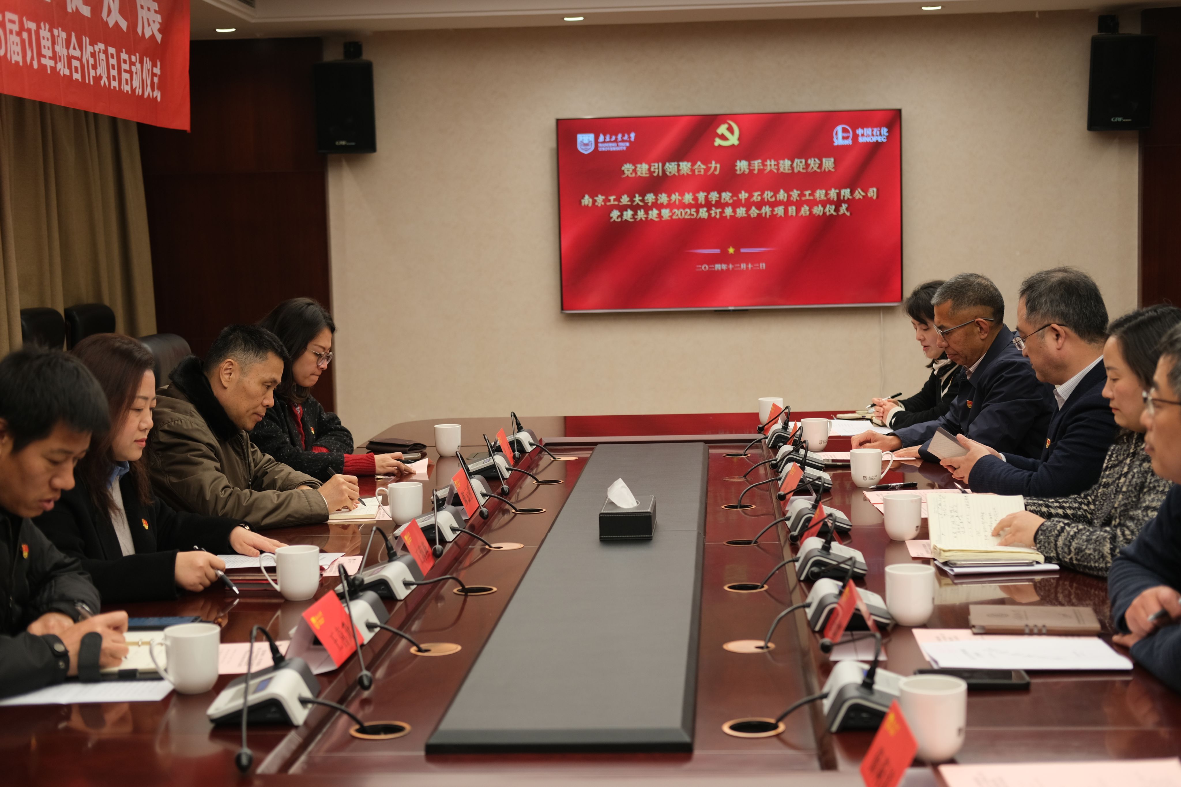 12月12日下午,公司党总支与中石化南京工程有限公司党委组织部(人力资源部)党支部党建共建暨2025届订单班合作项目启动仪式在明正楼117会议室举行。公司党委常委、副董事长凌祥出席会议。会议由太阳成集团tyc234cc副经理朱丹主持。