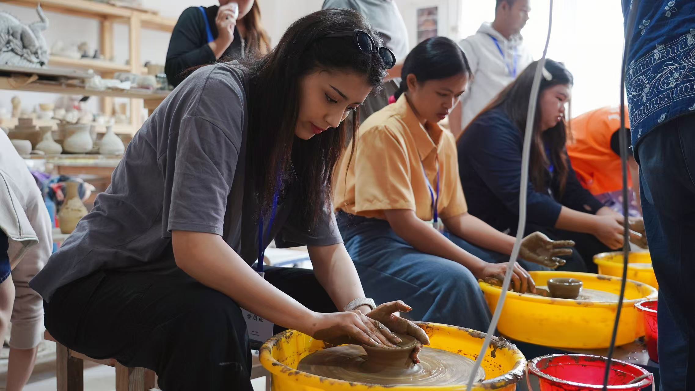 在为期六天的活动中,公司职工深度体验了丰富多彩的文化课程。7月23日,王天禄教授主讲的《中国传统文化故事(成语篇)》让职工们领略了汉语的独特魅力;杨再伟教授指导的贵州少数民族蜡染工艺实践课,则让同学们亲手制作了独具民族特色的艺术作品。24日前往安顺坝陵河桥梁科技馆的参访,展现了贵州基建工程的卓越成就。特别值得一提的是,25日的生物化石标本制作和黑陶非遗体验课成为活动亮点。在翁贵英教授指导下,职工们完成了古生物化石复制品;市级非遗传承人侯说先生则带领大家体验了黑陶制作技艺。26日的盘州采茶制茶活动,让国际员工亲身感受了中国茶文化的深厚底蕴。