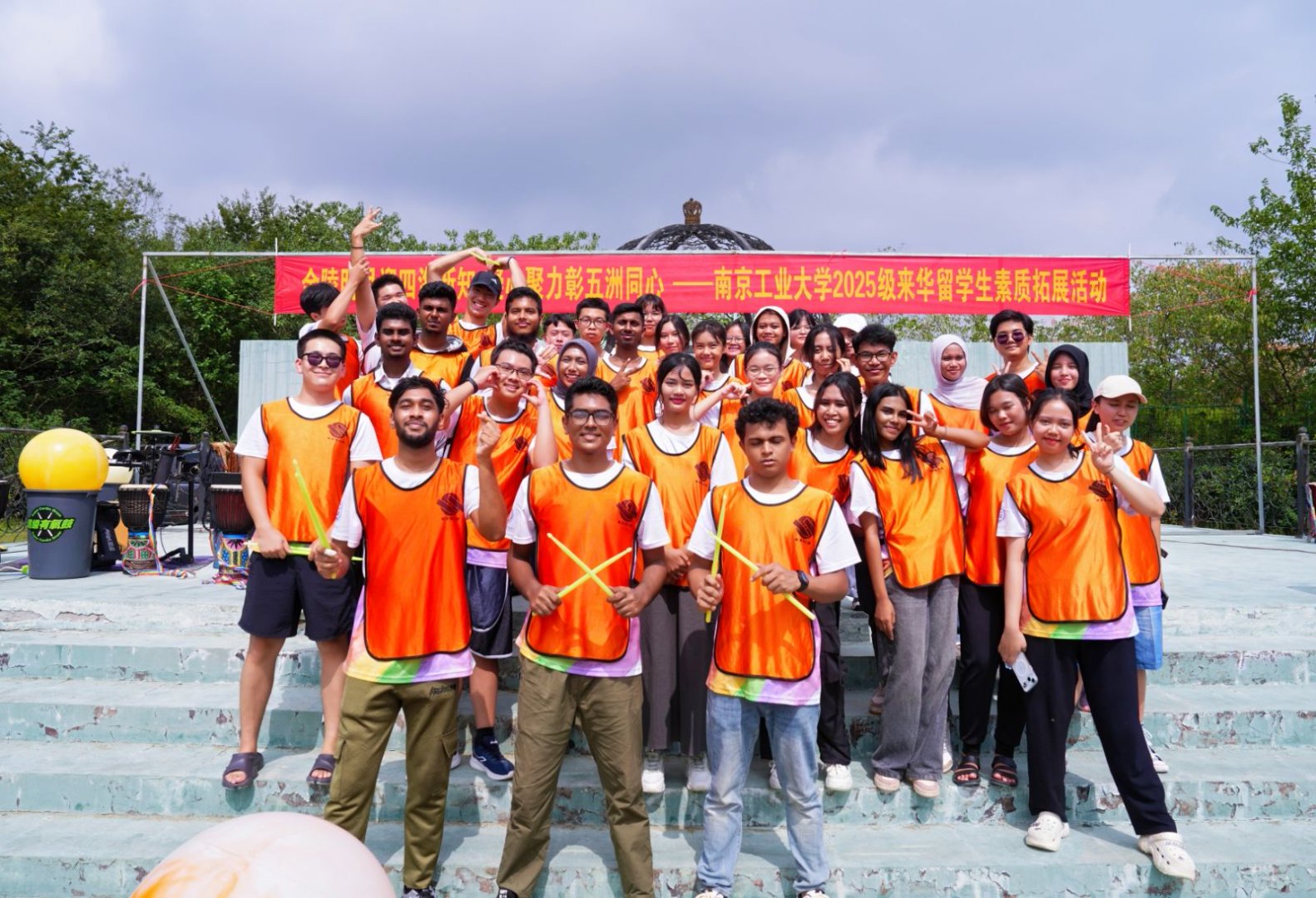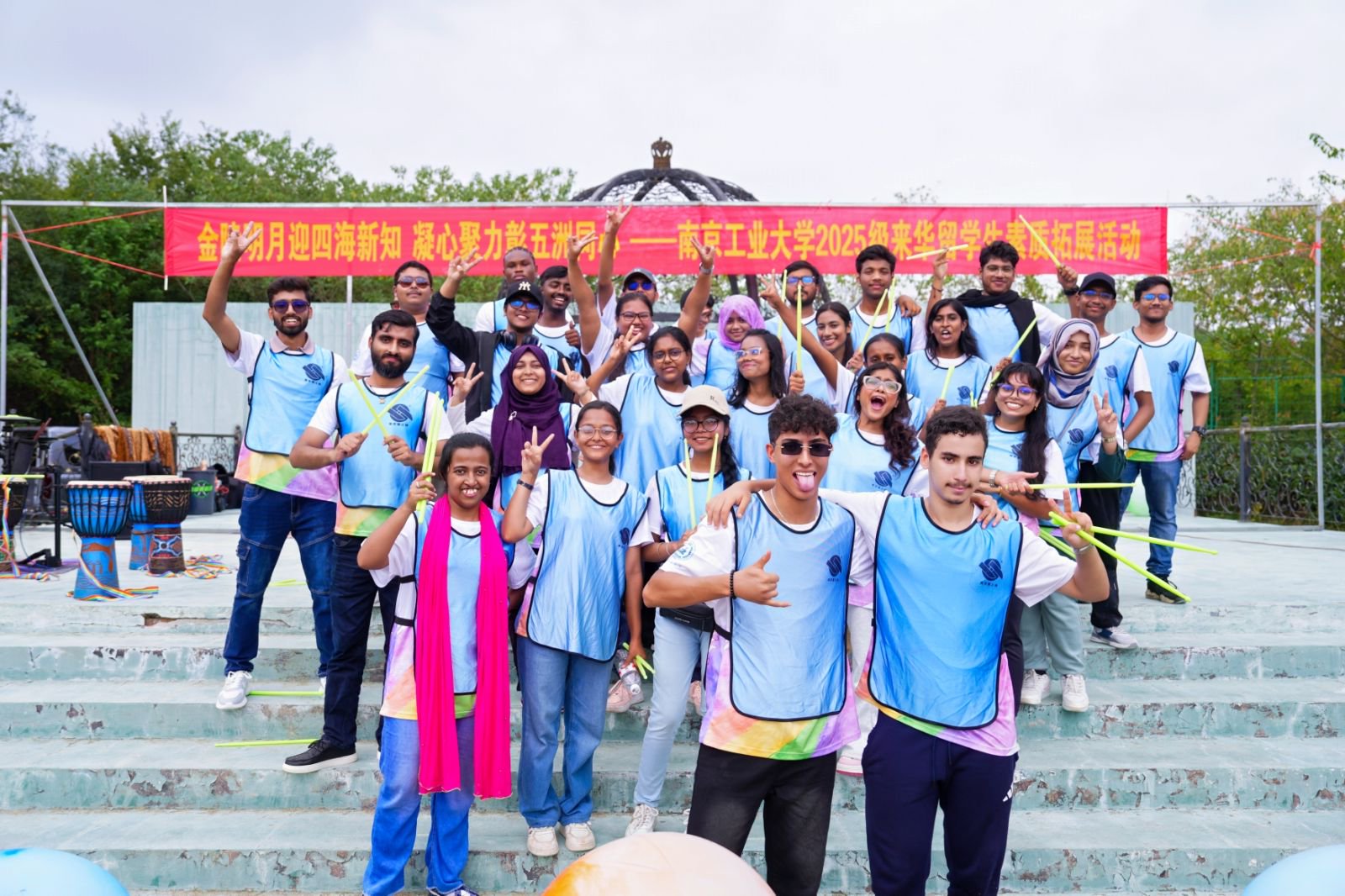 9月28日,太阳成集团tyc234cc“金陵明月迎四海新知,凝心聚力彰五洲同心”为主题,为2025级来华职工举办新生入学教育活动之素质拓展。来自23个国家的200余名职工在节奏明快的鼓声中相识相知,又在提前预热的中秋佳节部环节里共同感受中国传统文化。