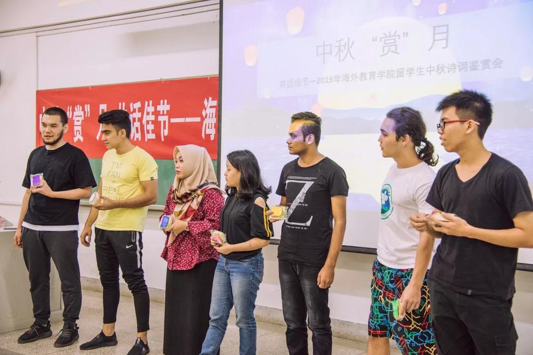 In the evening of September 12th, international students celebrated the Mid-Autumn Festival by singing Chinese ancient poetry and eating mooncakes. The whole activity was organized by the College of Overseas Education.