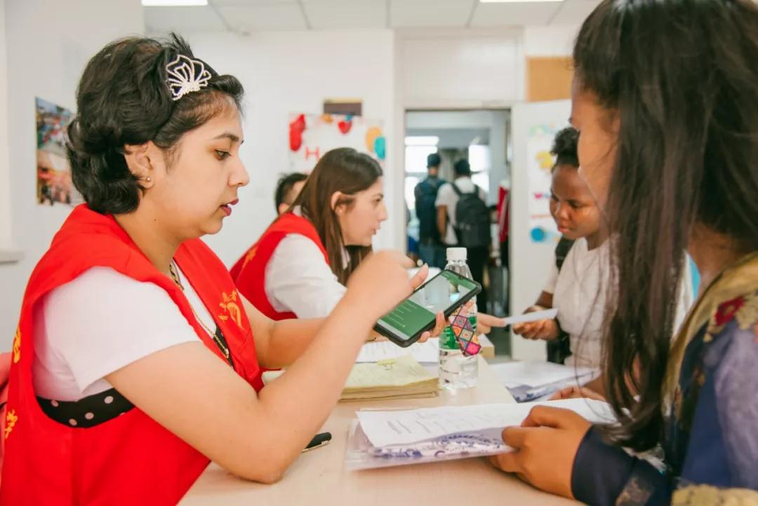 In order to carry out the one-stop service for freshmen to report and register, the College of Overseas Education (COE) set up two registration desks with staff from departments of finance, campus safety, logistics and COE working on site. The colleges also played an important role in welcoming the new students. Besides, volunteers, both Chinese and international ones, also joined in the work of helping freshmen hand in the materials, check in, purchase insurance and pay for the fees.