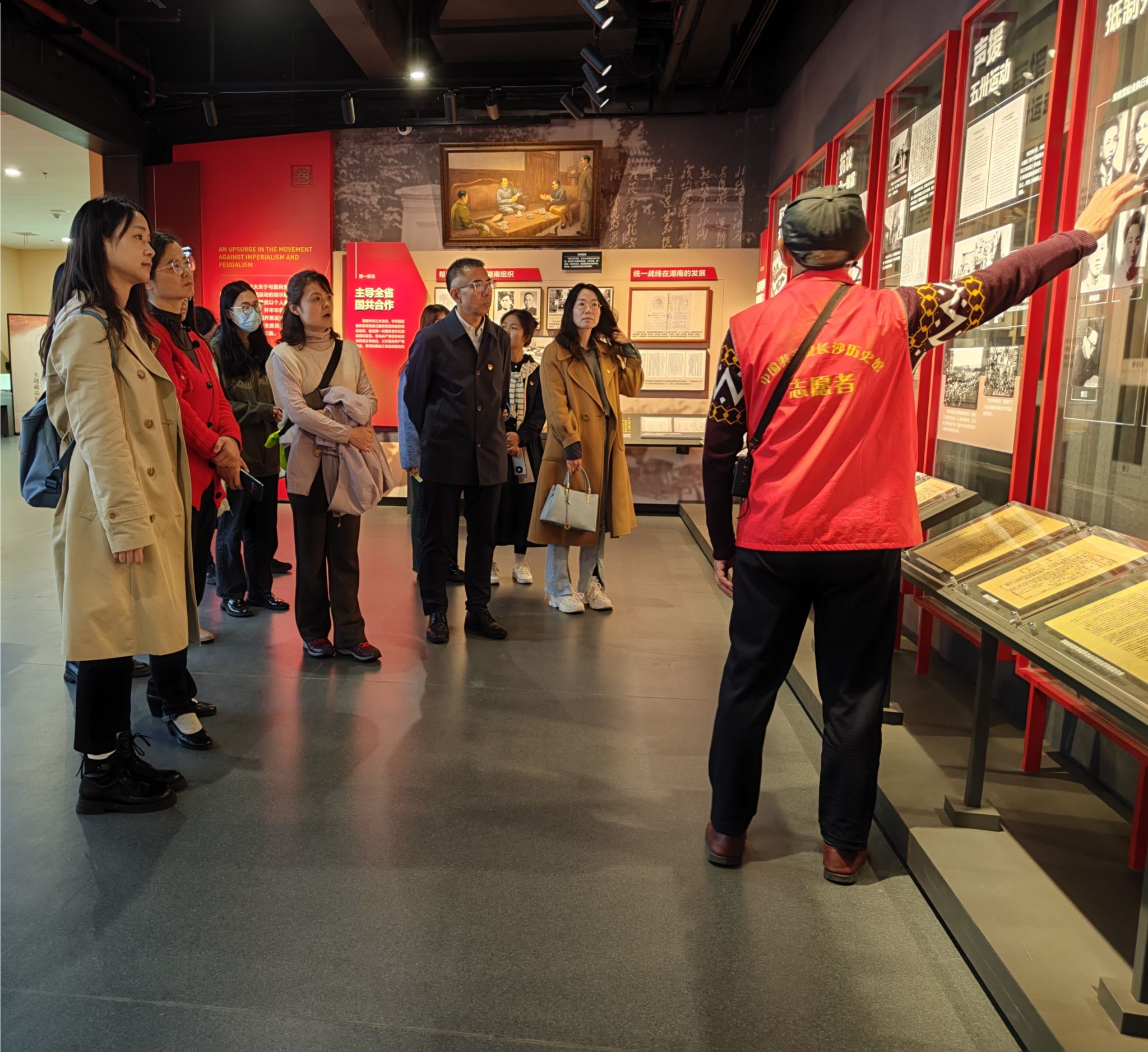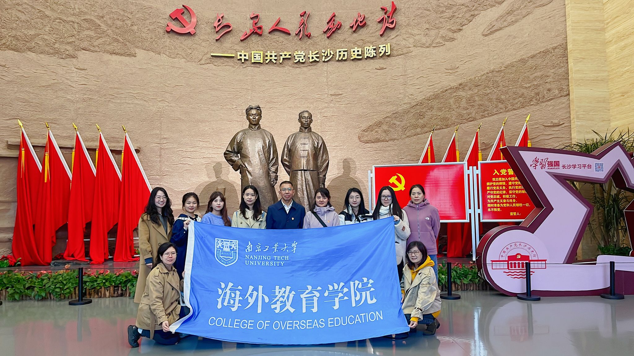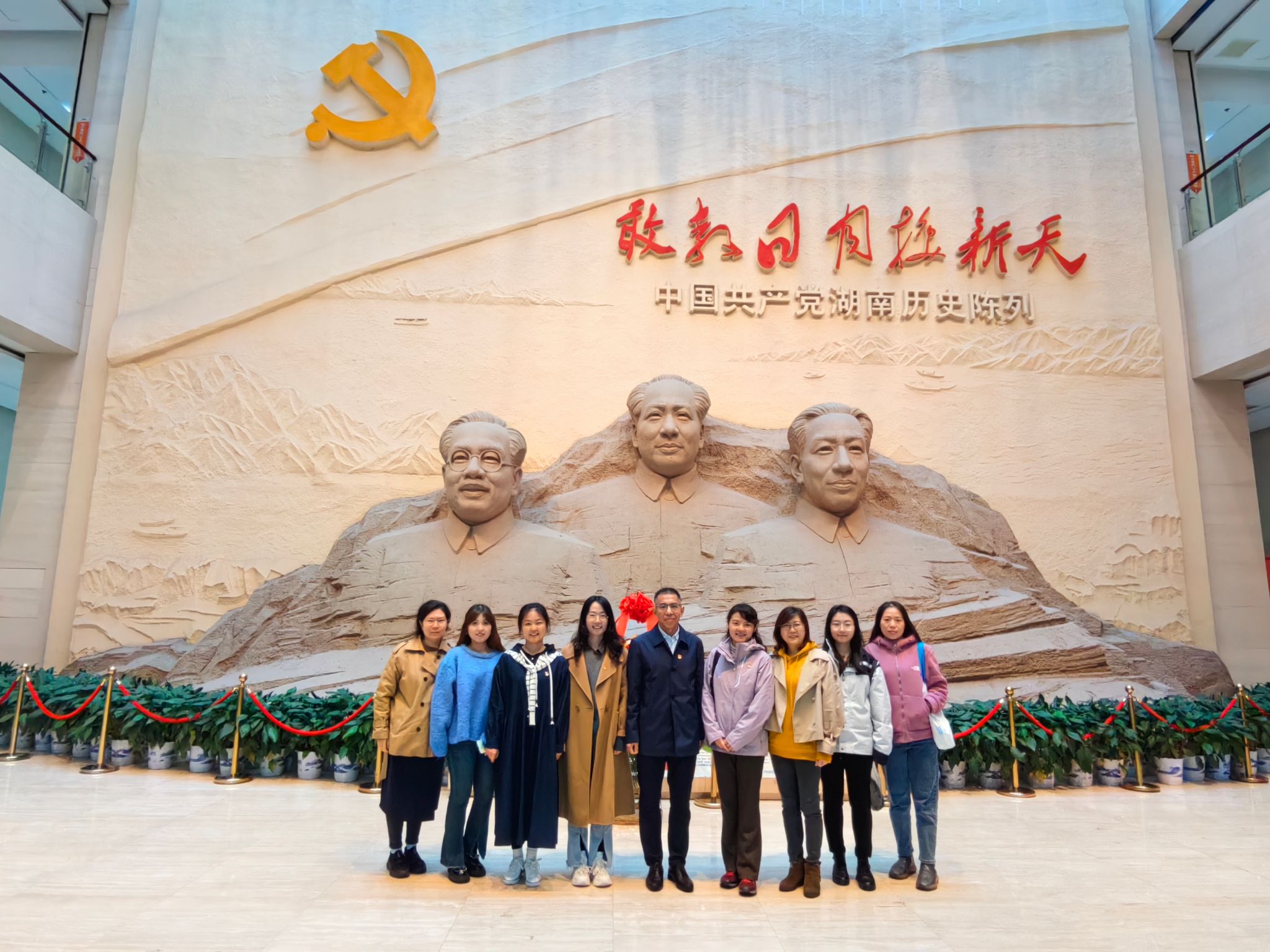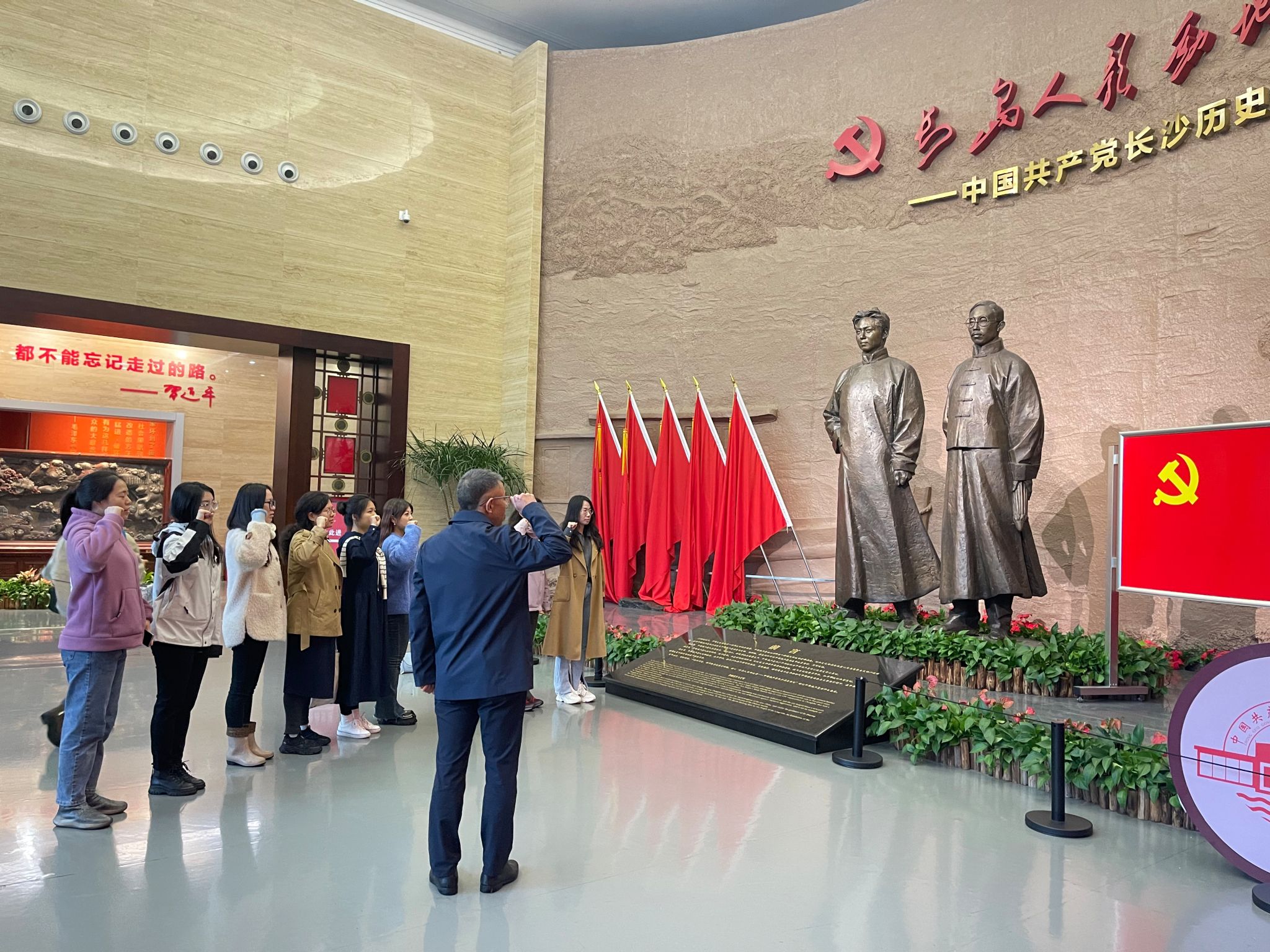 在长沙,全体党员先后参观了中共长沙历史馆、湖南党史陈列馆、橘子洲头、岳麓书院等红色教育基地。在志愿者易复刚老先生的讲解下,大家感受了长沙的红色情怀并在重温红色记忆中传承红色基因,观看了“敢教日月换新天”为主题的中国共产党湖南历史陈列,深入了解党的湖南发展史与艰苦奋斗的历程。在橘子洲头,尽管西风凛冽、寒意刺骨,但大家仍旧怀着无比崇高的敬意瞻仰毛主席青年艺术雕像,通过雕像创作背后的故事,明白了革命先辈为伟大祖国所奉献的一切,也更加历练了大无畏的革命乐观主义精神。在湖南大学,大家通过图片、文物等资料了解了岳麓书院从古至今的发展历史、领略其独特魅力。