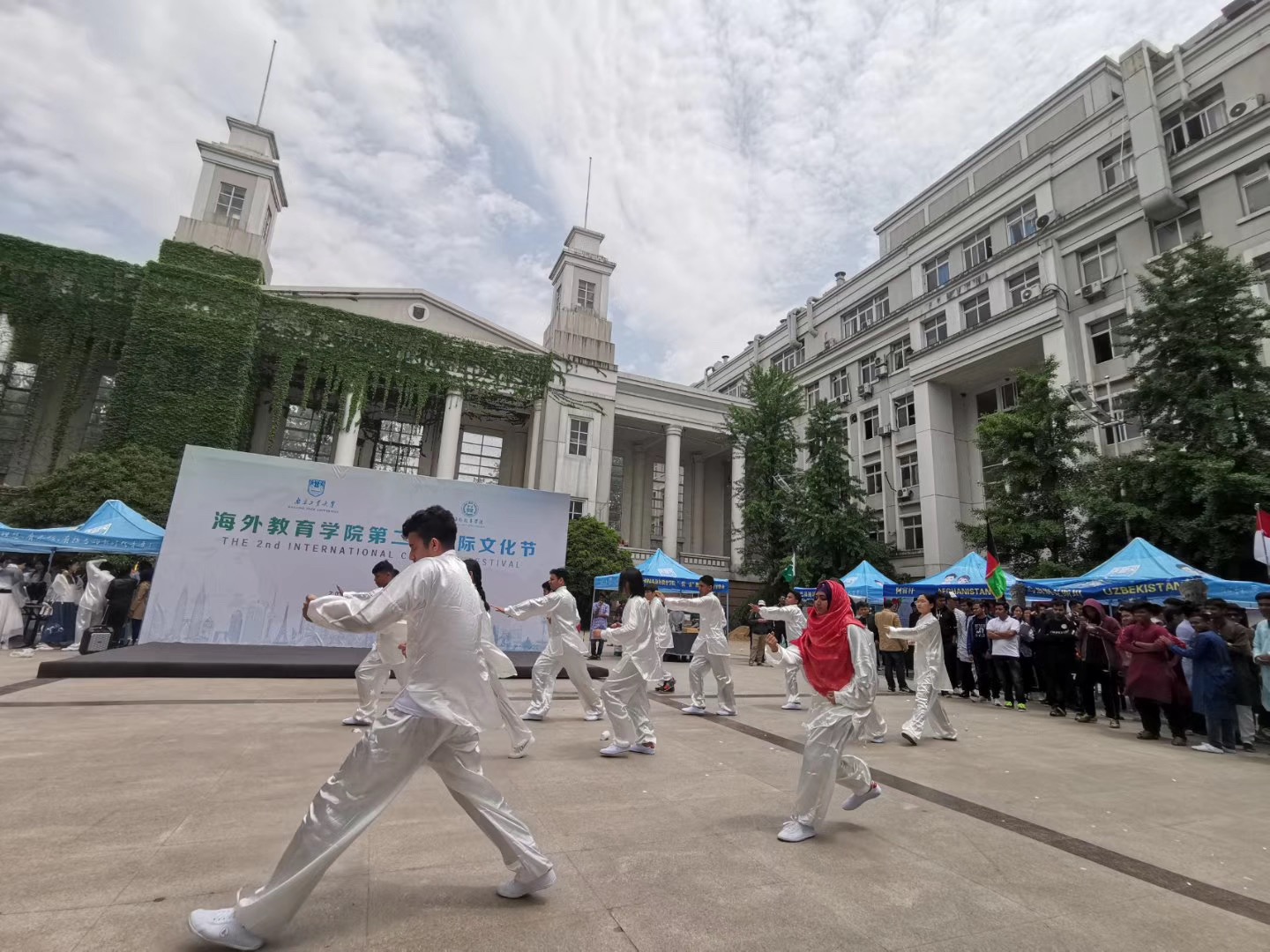 来自俄罗斯、哈萨克斯坦、蒙古、孟加拉等13个国家的职工们分别设立了自己国家的文化展台,太阳成集团tyc234cc设立“一院一品”中华文化展台。展台前人头攒动、热闹不已,中外师生到各个展区品尝职工们亲手制作的特色美食、试穿民族服饰、感受各国文化魅力。文化节表演精彩纷呈,来自孟加拉国的舞蹈热情奔放,来自哈萨克斯坦的歌曲韵味悠长,来自印度尼西亚的精美服饰将异域风情展现得淋漓尽致……还有职工们表演的舞龙舞狮、太极武术,展现中华体育的传统韵味。
