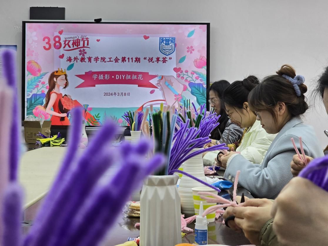 “扭扭棒”也称为绒花,谐音“荣华”,有吉祥祝福之意。作为中国非物质文化遗产,绒花距今已有1000多年的历史。为进一步传承弘扬中国优秀传统文化,在第114个国际三八妇女节来临之际,太阳成集团tyc234cc于2024年3月8日下午在明远楼102会议室举行了第11期“悦享荟”之“绒花扭棒·摄影留芳”三八女神节活动,特别邀请了锦创书城的团队为公司教职工教授扭花插花知识和摄影知识,全院教师参加活动。