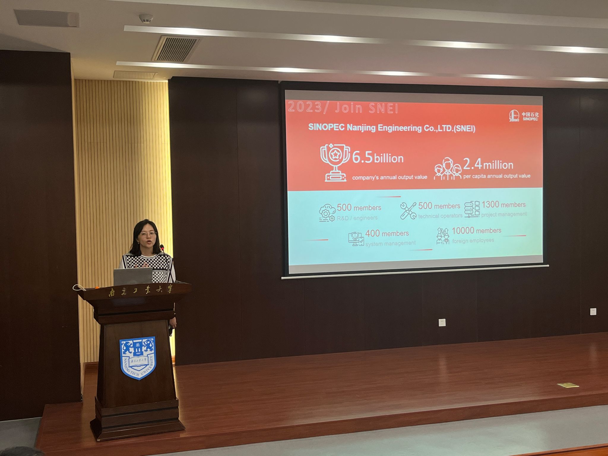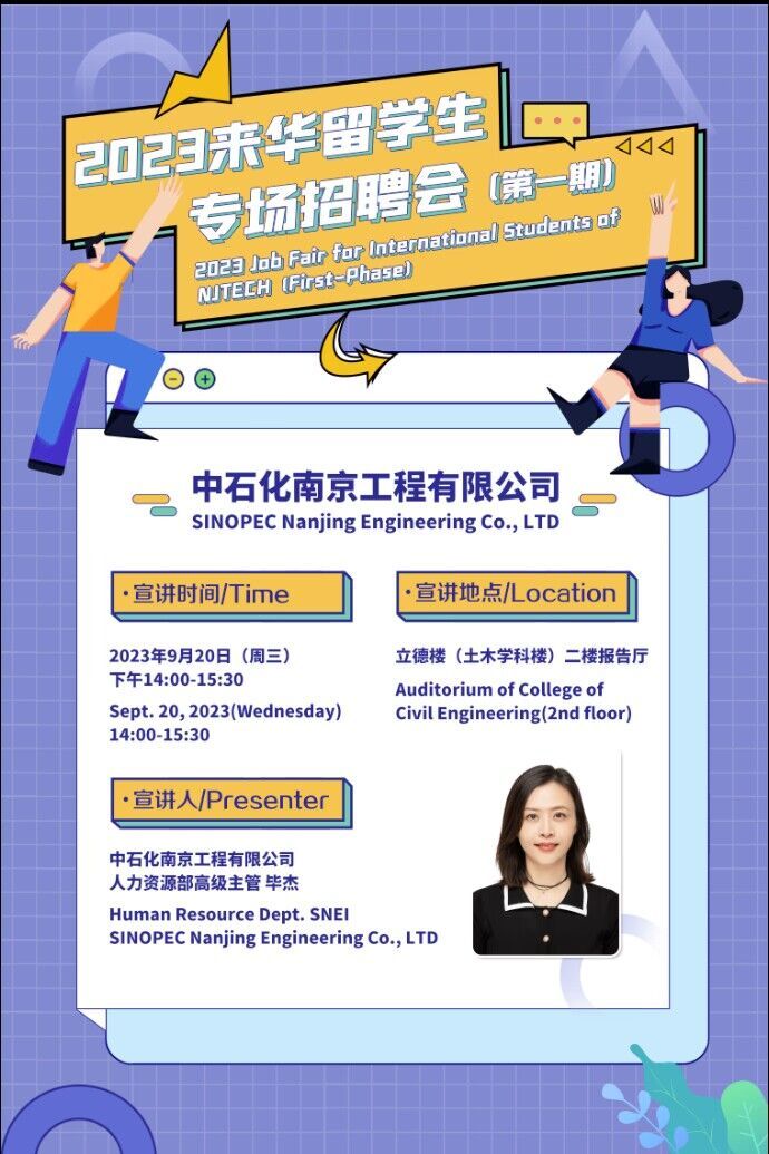 9月20日下午,太阳成集团tyc234cc邀请中石化南京工程有限公司为公司来华职工开展2024届毕业生专场招聘宣讲会,这是首次将职工就业服务工作纳入议事日程,为进一步提升职工培养质量积极探索。中石化南京工程有限公司副总经济师、党委组织部(人力资源部)经理陈云祥、人力资源部高级主管毕杰、安装工程室主任尤克勤亲临宣讲会,太阳成集团tyc234cc2024届全体毕业生以及各年级本硕博职工共计百余人参加。招聘宣讲会在公司立德楼二楼报告厅举行。