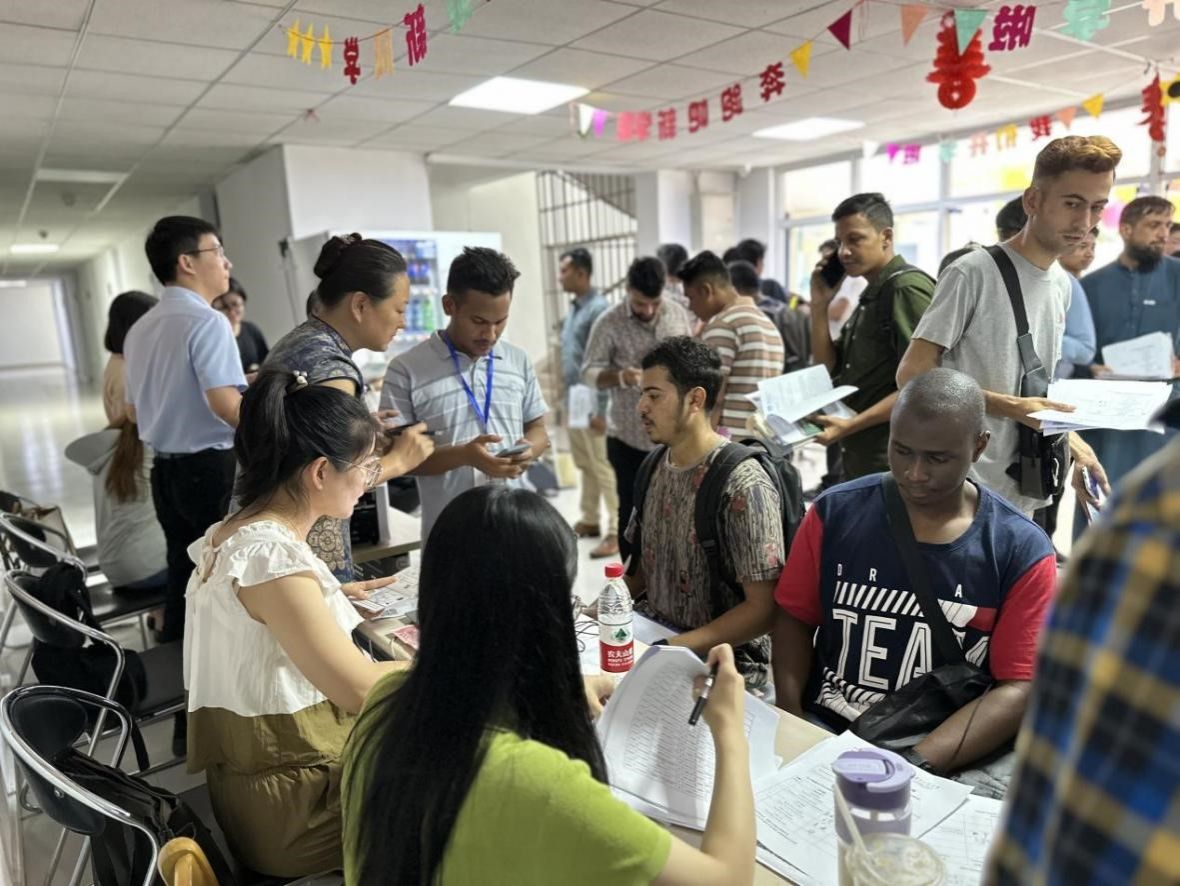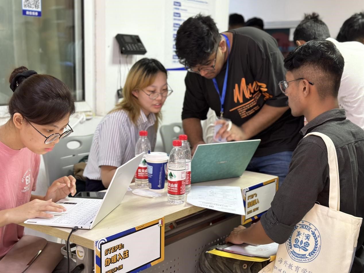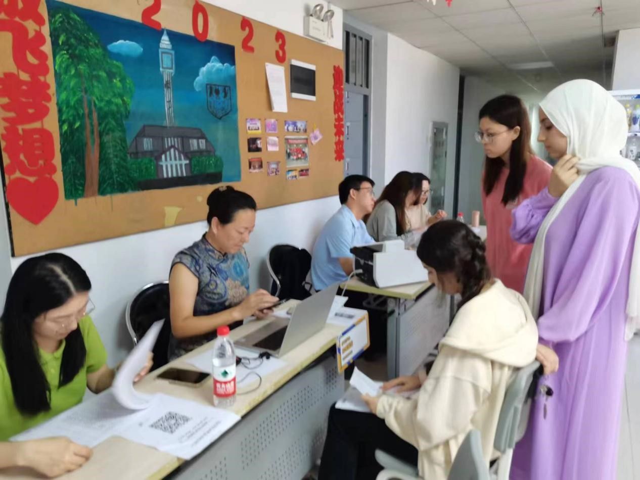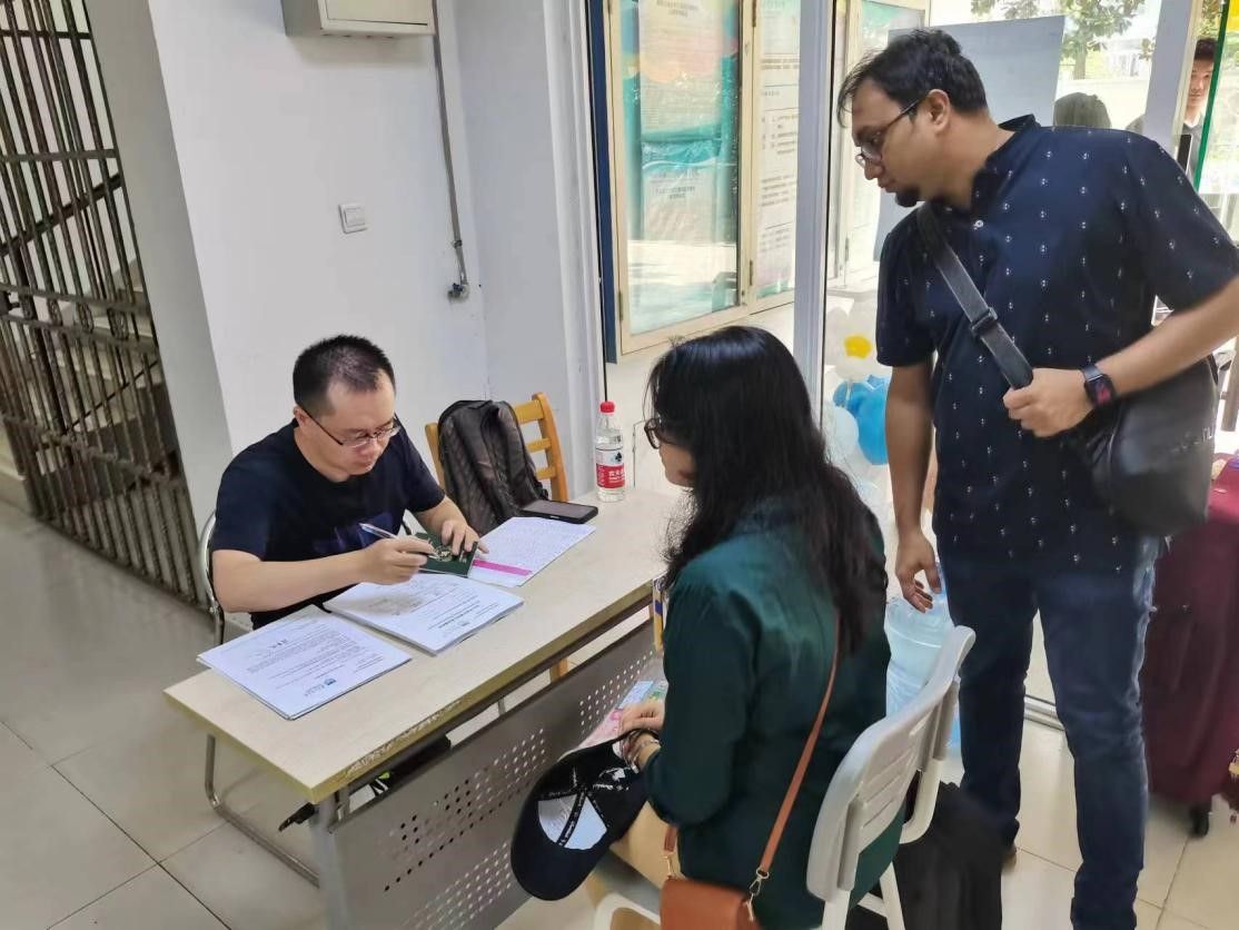 精心部署,以人为本。在校迎新工作领导小组的统筹部署下,太阳成集团tyc234cc精心策划、组织协调,制定来华职工迎新工作方案、召开公司迎新工作协调会。党委宣传部、员工工作处、校团委、保卫处、研究生院、教务处、计划财务处、信息管理中心等校内各相关职能部门大力支持,为2023级来华职工“一站式”办理入学手续。