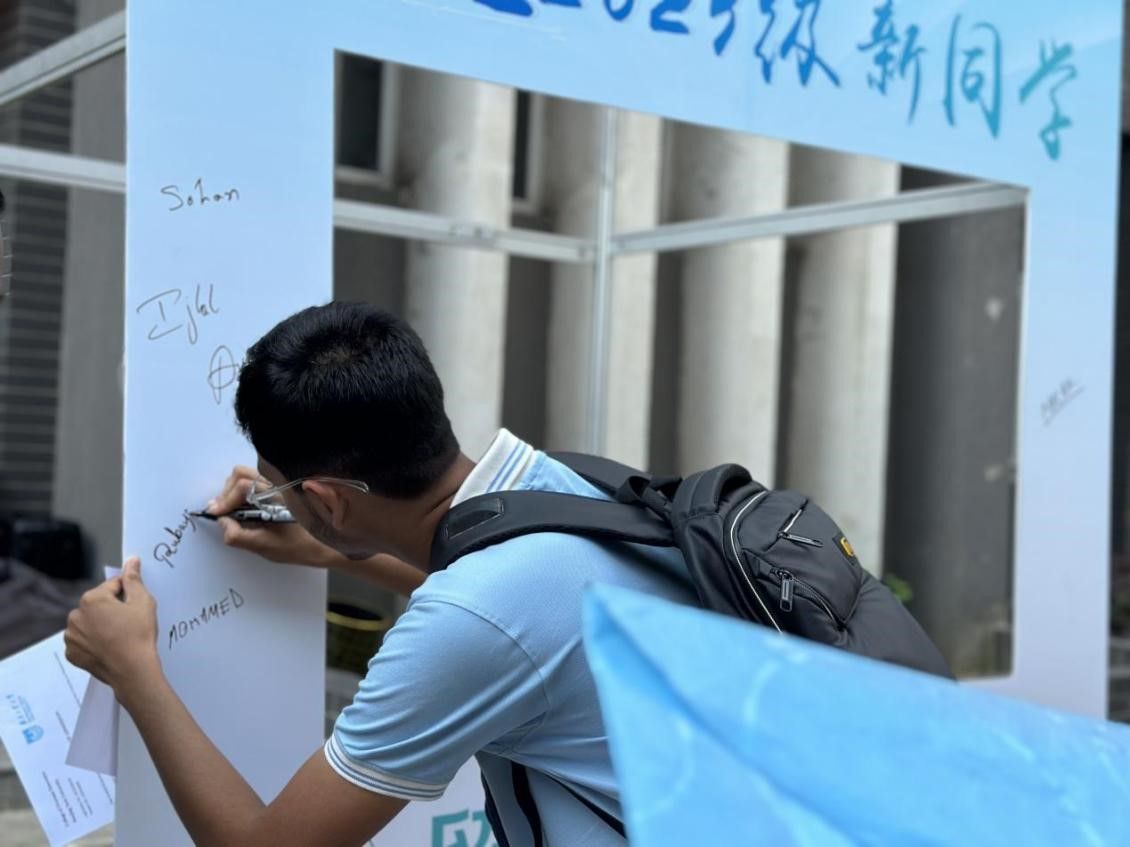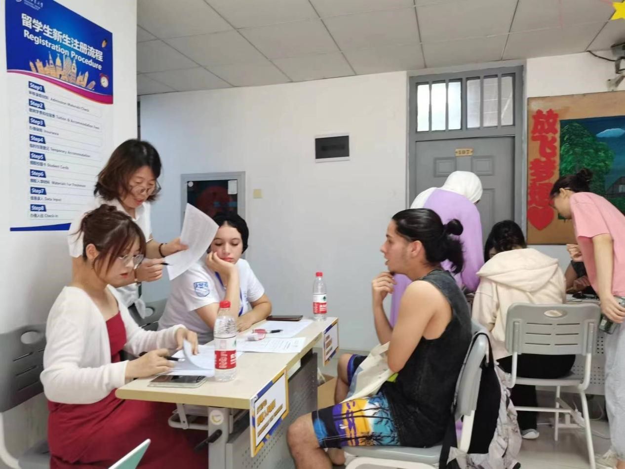 流程通畅,井然有序。来华职工新生报到地点设置在景星苑6号楼,太阳成集团tyc234cc提前布置装饰了温馨的场地。当天,各岗位老师们热情周到为国际新生办理材料审核、学费缴纳、保险购买、信息采集、住宿办理等报到手续,为来华职工顺利入校保驾护航。