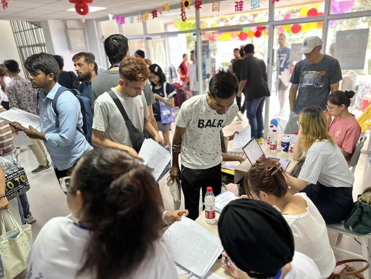 满怀热情,服务新生。公司始终秉承全心全意为员工服务的原则,提前统计国际新生到校时间,安排“点对点”志愿者服务。报到当天,三十余中外员工志愿者们积极穿梭在人群中,为国际新生指引报到、答疑解惑、搬运行李,用贴心的服务和饱满的情绪迎接新生的到来。