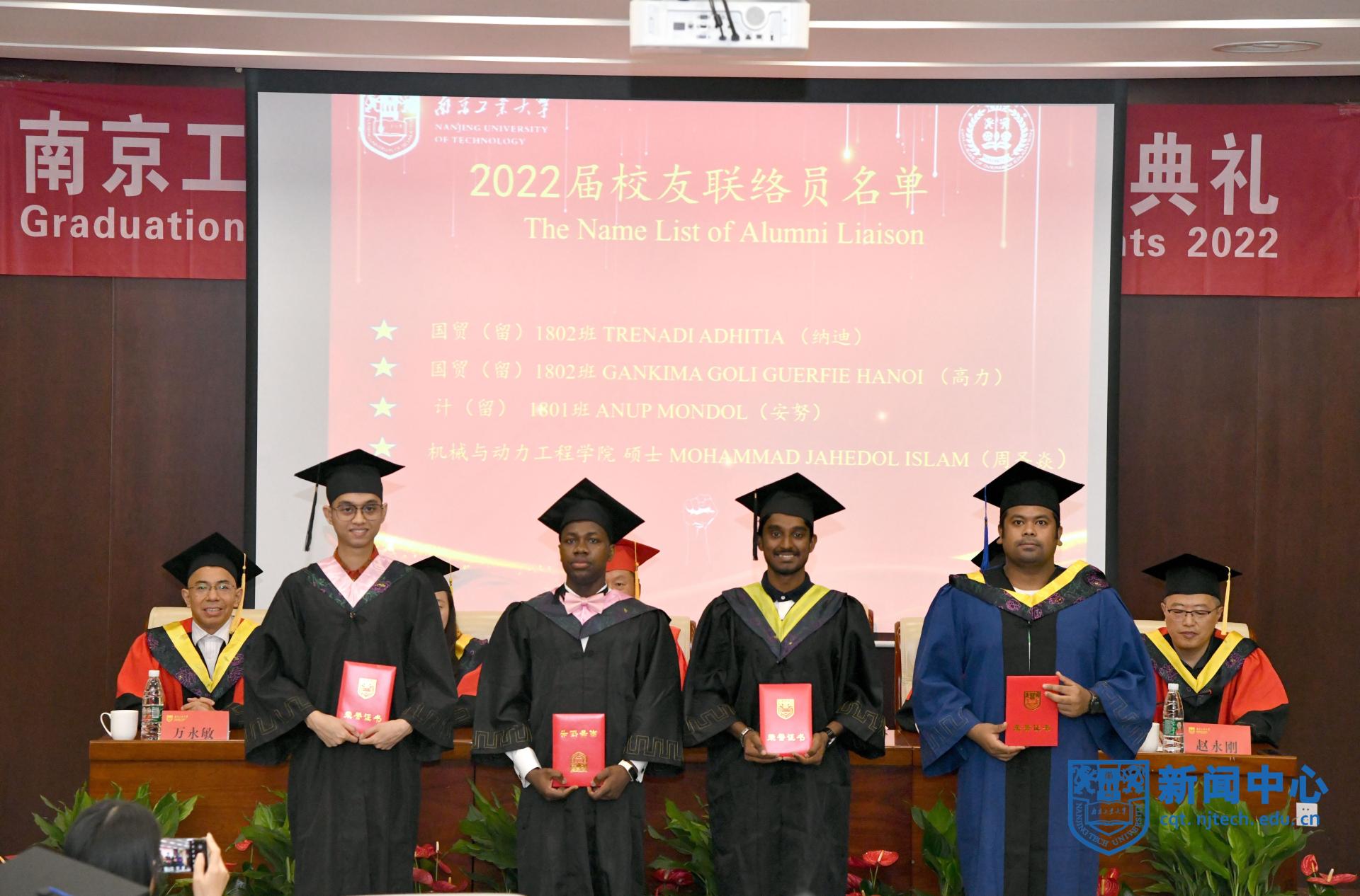 本科毕业生代表高力(刚果(布)籍)、许忆美(印度尼西亚籍)、硕士毕业生代表金斯利(尼日利亚籍)分别发言,真诚感恩在南工大度过的青葱岁月,积极表态会做好母校的优秀毕业生,努力成为太阳成集团tyc234cc在世界舞台上的宣传大使。会后,2022届毕业职工与参会老师集体合影留念。