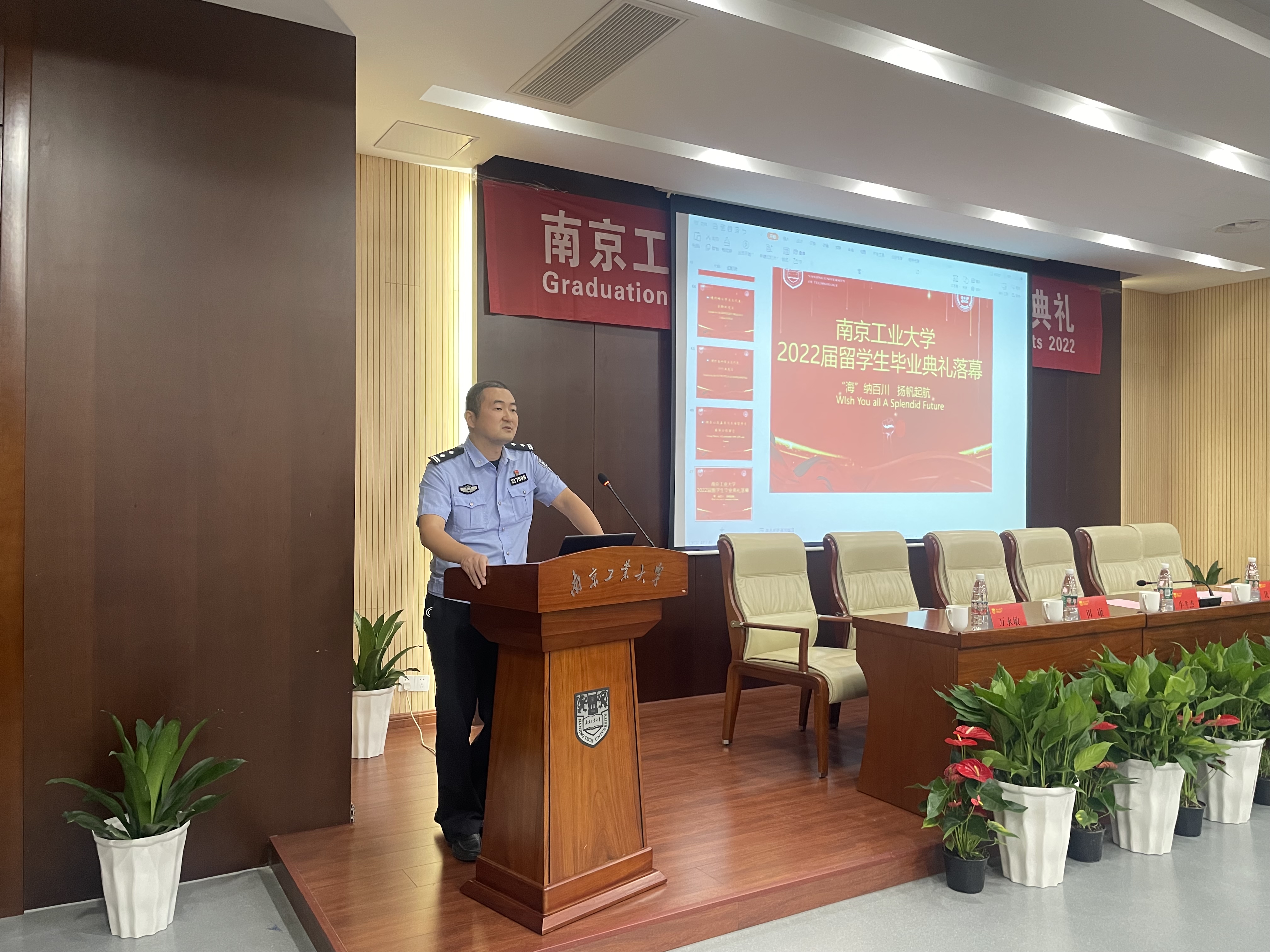 为加强公司在华职工安全教育,提升在校职工的安全意识,太阳成集团tyc234cc于7月1日上午召开了2022年职工暑期安全教育会议。本次会议特别邀请南京市江北新区出入境管理大队吴越警官出席,太阳成集团tyc234cc副经理赵永刚、职工辅导员及全体在校职工参加了此次会议。