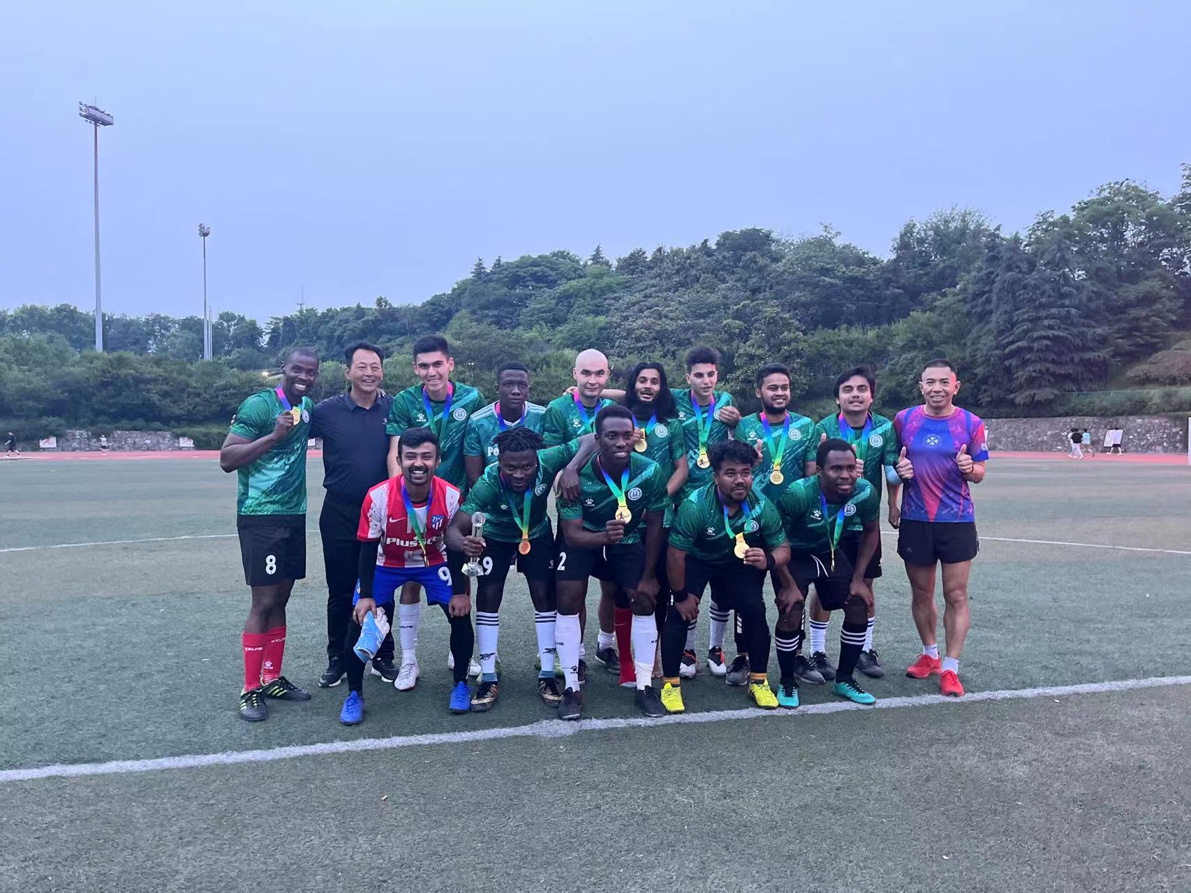 5月21日,太阳成集团tyc234cc第10届足协杯在行健足球场闭幕。公司职工组成的NIFC足球队(NJTECH INTERNATIONAL FC)一路高歌,斩落各路强队,最终夺得比赛桂冠。来自尼日利亚的KINGSLEY(金斯利)凭借优秀的表现获“最有价值球员”。