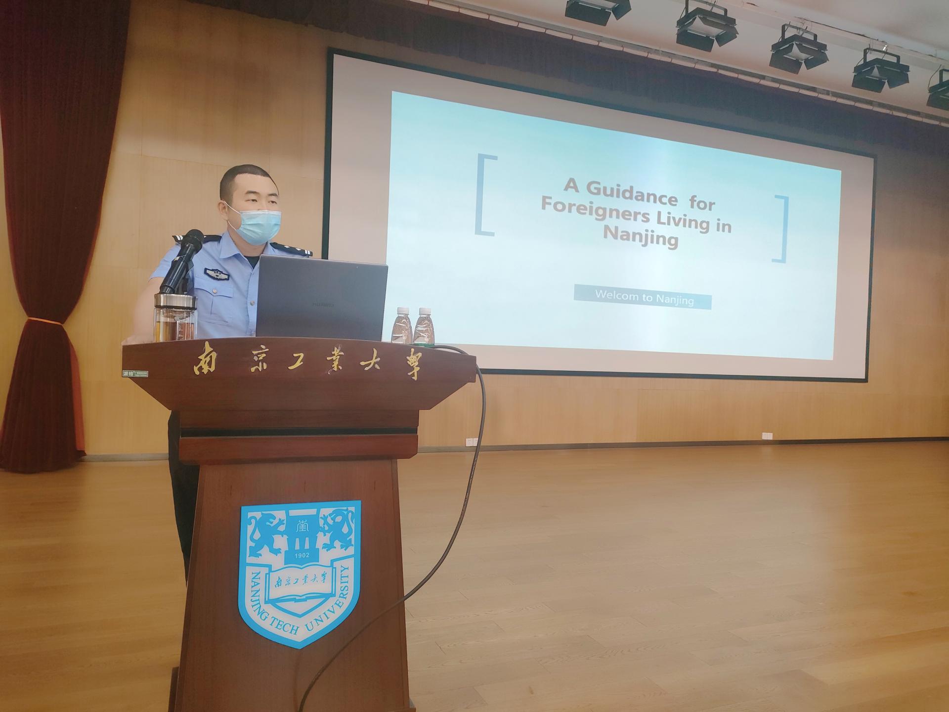 吴越警官为职工们讲授了在华学习期间签证、居留许办理程序及就业等法律法规知识;深入浅出地从宗教管理、毒品犯罪、机动车驾驶、防火防盗等方面进行了全面的安全警示教育。讲座期间,吴警官和职工多次进行互动交流,并对职工提出的问题一一做出了解答。讲座气氛热烈,师生受益匪浅。