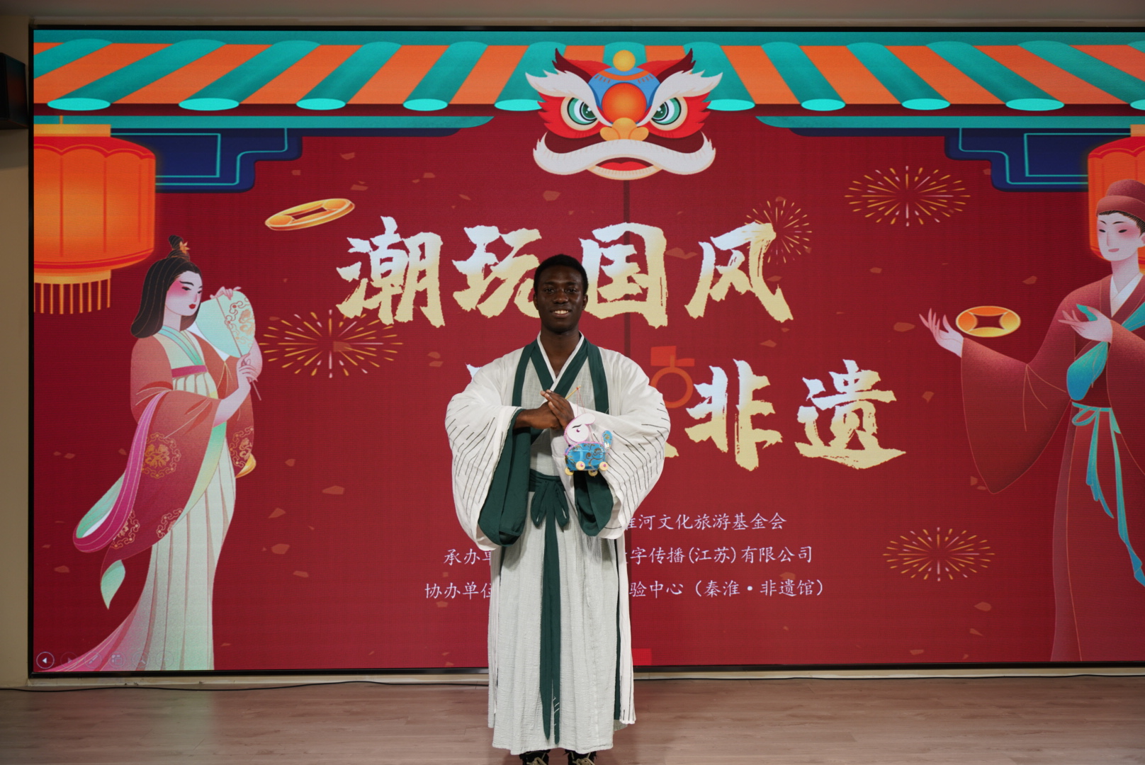 本次活动获得了来自人民日报数字传播(江苏)有限公司的大力支持,为公司职工提供了专业的汉服穿戴体验,并邀请职工们观赏了由江苏省昆剧院带来的昆曲化妆讲解以及精彩的《牡丹亭. 游园惊梦》片段。职工们兴致盎然地观赏了非遗馆内135项非遗项目及优秀作品,并品尝了非遗馆提供的南京小吃。职工们对我国的汉服文化、非遗作品以及优美戏剧和美食充满浓厚兴趣和喜爱。来自多哥的丁以理同学还接受了人民日报的采访。