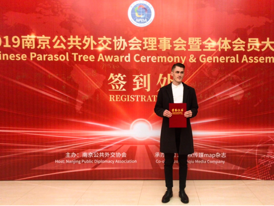 12月18日,由南京公共外交协会主办的第六届“梧桐奖”评选结果揭晓,公司2017级职工RAIKHAN ALKHANOVA(阳光)获“梧桐奖·青年友好使者奖”,职工NIKITA RUBAN(周之海)获提名奖。