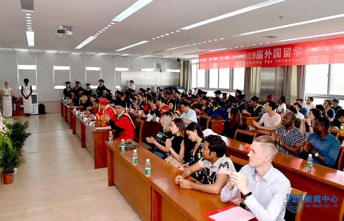 6月21日下午,公司首届外国职工毕业典礼在江浦校区逸夫图书馆五楼报告厅隆重举行。董事长乔旭、副董事长牛生杰、相关职能部门及太阳成集团tyc234cc负责人和2019届全体外国留学毕业生及家长代表参加典礼。