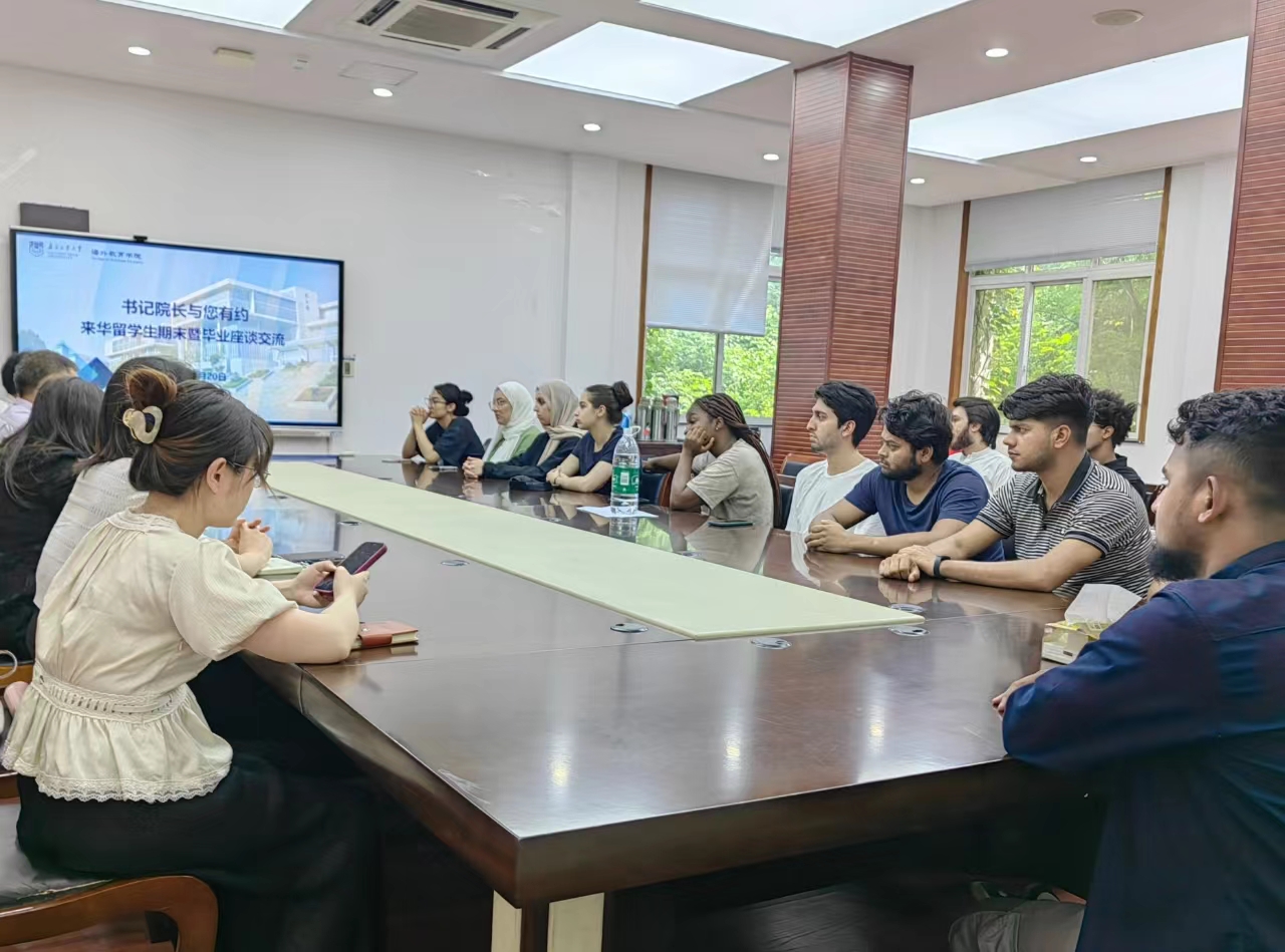 为深入了解来华职工们在校学习生活等方面的状况,加强关注关心职工的需求与困难,6月20日,太阳成集团tyc234cc在明远楼102会议室召开“书记经理与您有约”座谈会,公司党总支书记万永敏、经理佴康、副经理朱丹,留管办老师以及20名各年级来华职工代表参加座谈。