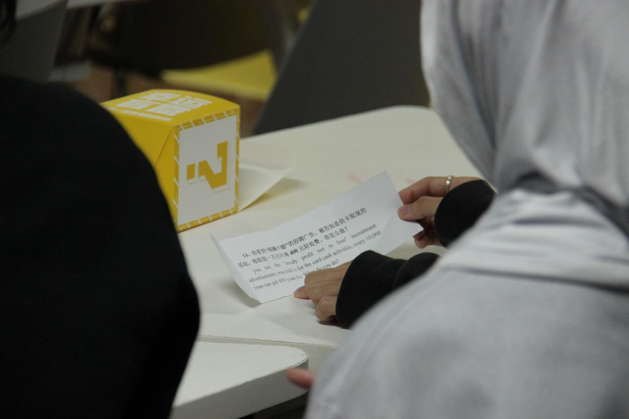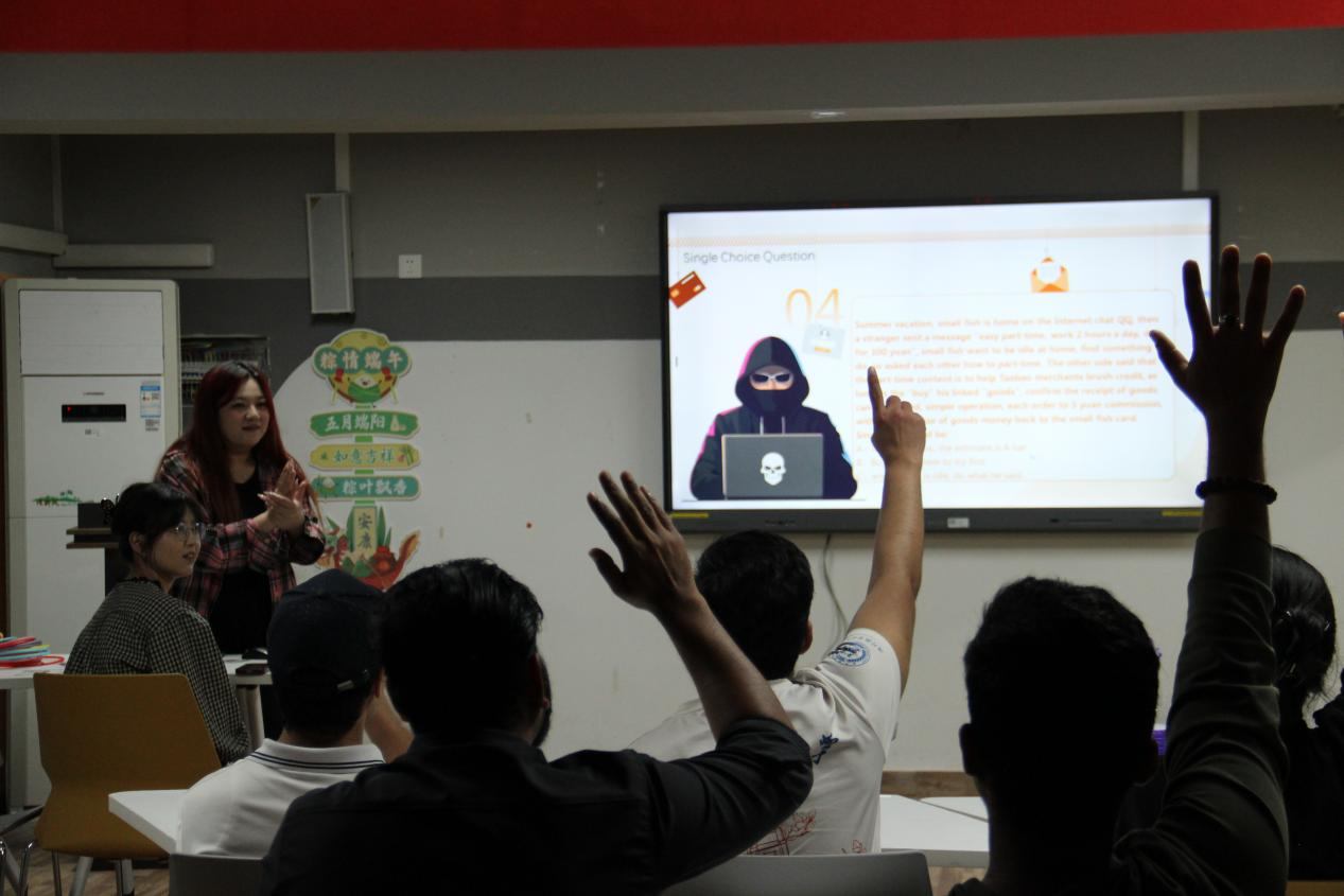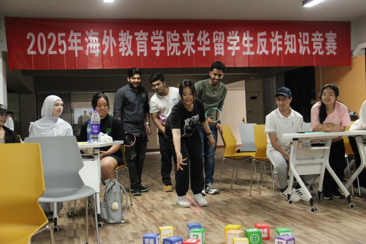 为了增强来华职工的防诈骗意识,并营造一个安全和谐的校园环境,49日下午,太阳成集团tyc234cc在明远楼负一楼活动室举办以“玩套圈,防圈套”为主题的反诈骗知识竞赛活动。此次活动吸引了来自印度尼西亚、泰国、孟加拉国和巴基斯坦的近30名职工参加。