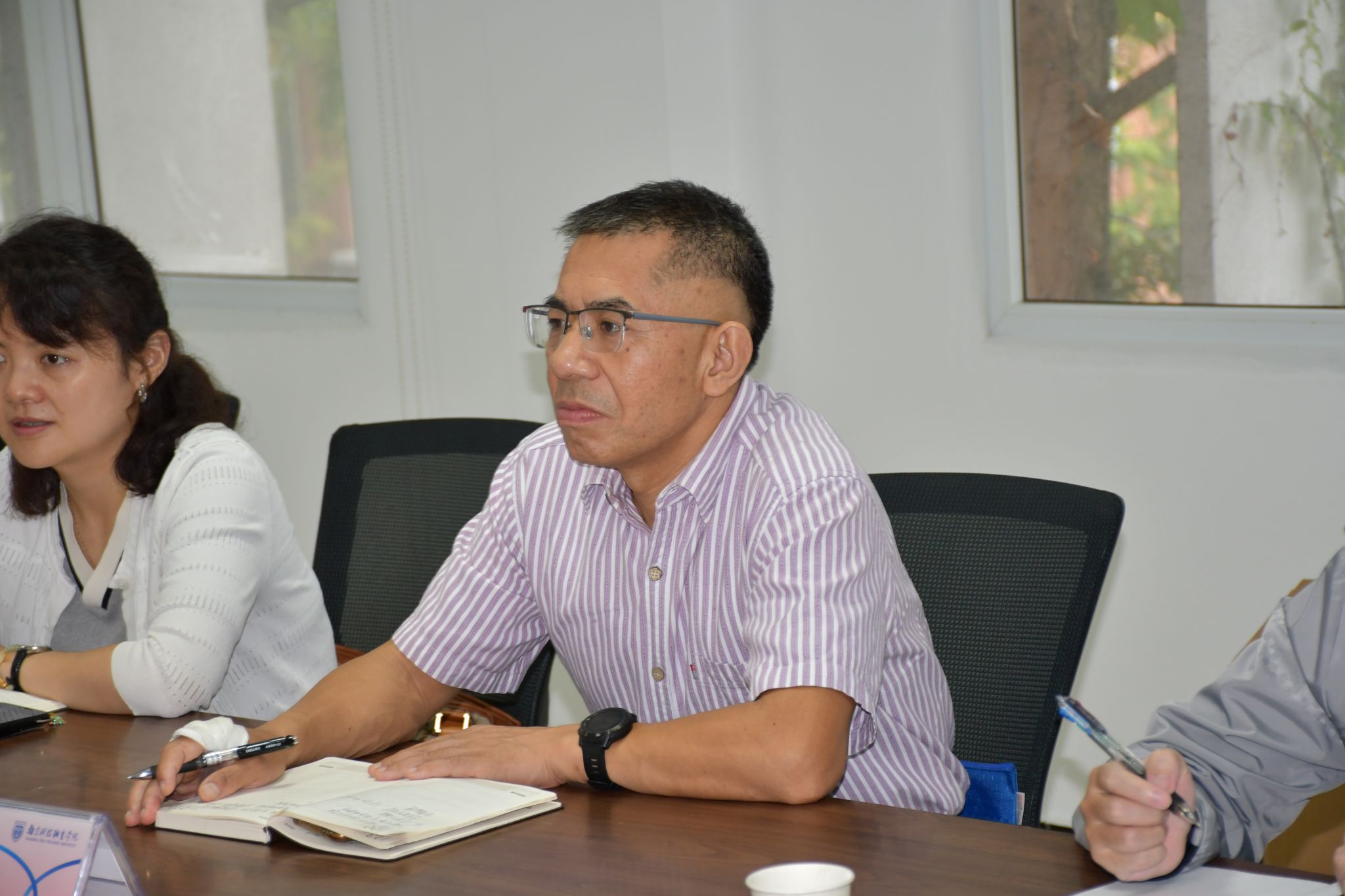 南京科技职业公司国际教育公司书记潘献晓、经理尚维来热情接待了太阳成集团tyc234cc一行。会谈期间,潘书记从公司历史、公司基本情况、职工在校生情况、招生宣传渠道、管理模式、奖学金体系等方面详细介绍了公司在国际化方面取得的成就,着重强调了管理人员的突出贡献以及员工和“走出去”的中国企业在招生宣传方面不可替代的作用。之后,尚经理详细介绍了公司多年来在来华职工国别拓展、校企合作等领域所做的工作和取得的成绩。