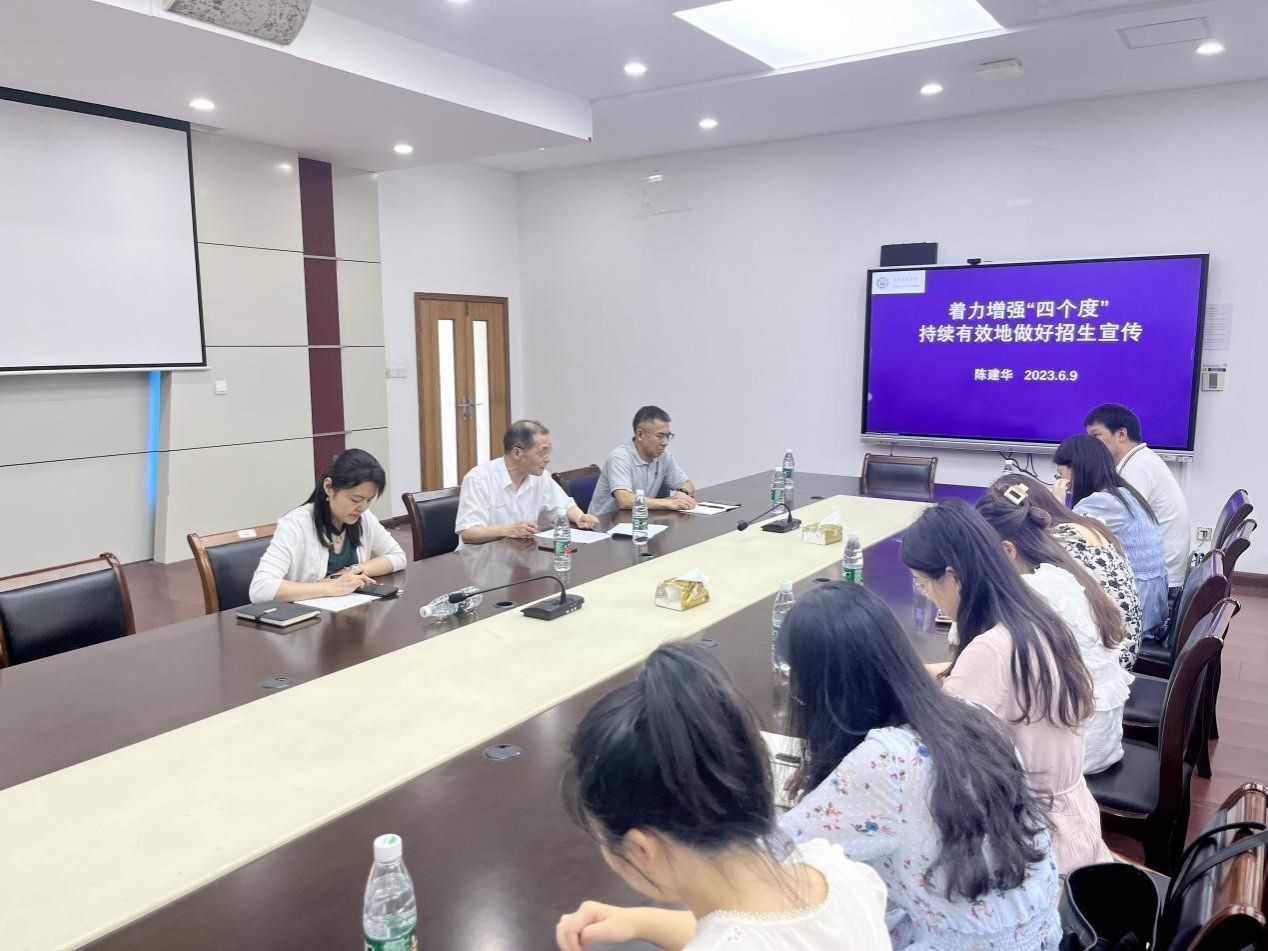 6月9日上午10:30,公司邀请艺术设计公司陈建华教授做主题为“着力增强“四个度”、持续有效地做好招生宣传”的讲座。公司党委书记万永敏、副经理朱丹、公司教师在明远楼102参加座谈。