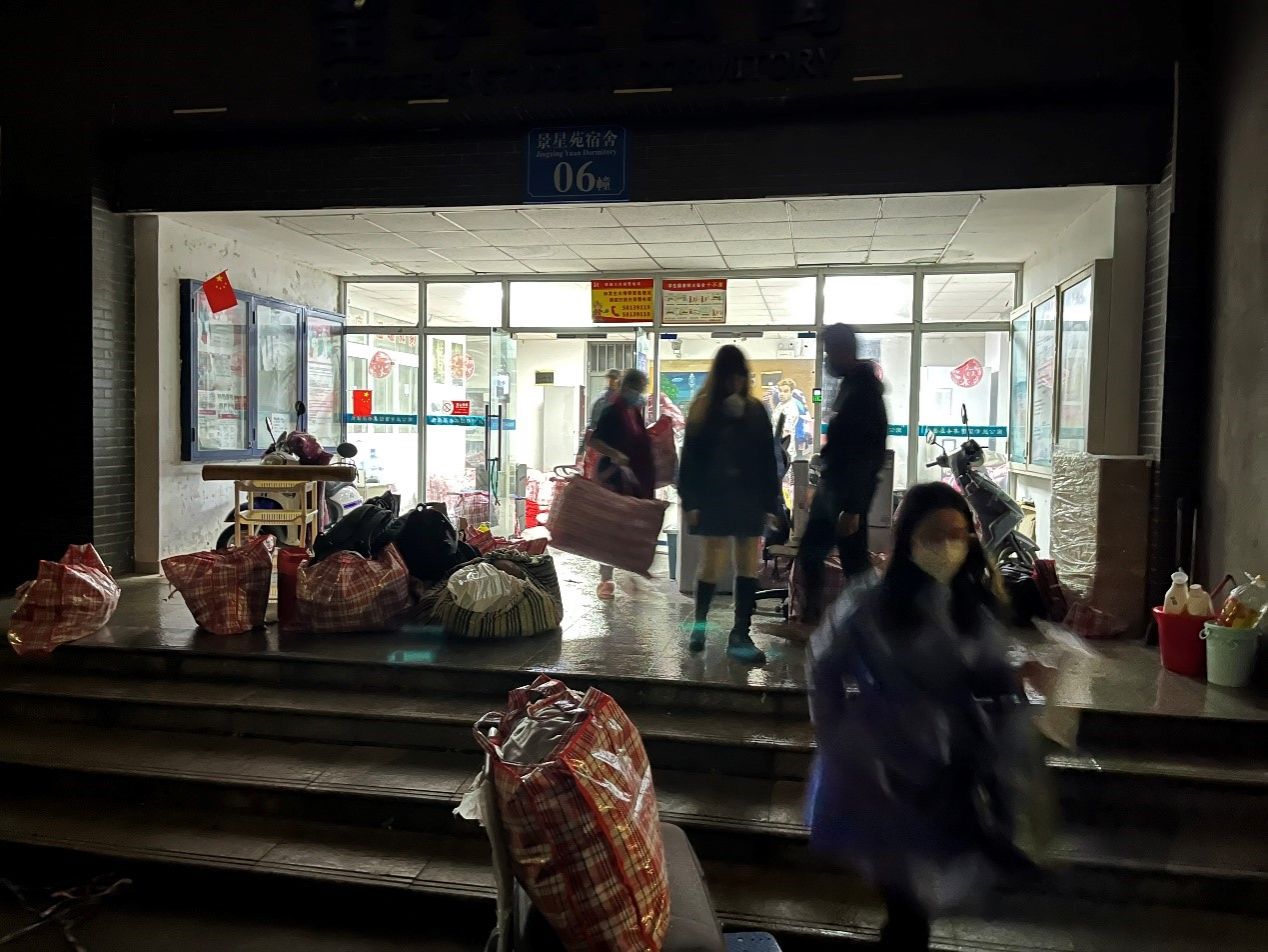 10月26日晚9时许,接公司紧急通知,景星苑6栋职工宿舍被临时征用为隔离点。学院职工管理团队第一时间制定工作方案,在1小时内完成在校职工宿舍的调整安排及新的网格化管理方案,辅导员们随即深入宿舍,将动员工作落实至每位职工。27日一大早,辅导员们就将连夜准备的打包袋、小推车等物资送到职工宿舍,协助职工进行搬迁。27日下午2点,原先有序的搬迁工作被突如其来的静默通知叫停,辅导员第一时间将通知传达到每一位职工,将所有职工都安抚在宿舍内,同时自己也化身“大白”协助防疫人员走入宿舍为职工做核酸检测。27日晚,在团队的精心组织和协助下,职工的搬迁工作在细雨中继续进行,直至28日凌晨1点半才全部结束。28日大清早,团队成员们拖着疲惫的身躯又回到了景星苑6栋,协助集团后勤保障处完成了两百余名境外员工行李的打包、归置,为景星苑6栋作为公司隔离点在当天的投入使用赢得了时间。