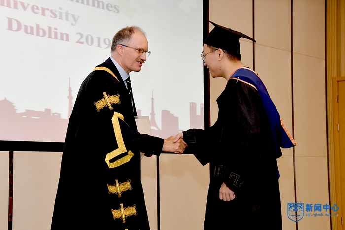 都柏林理工大学董事长David Fitzpatrick教授表示,本次毕业典礼是都柏林理工大学在爱尔兰境外举办的第一届学位授予仪式,意义非凡。他寄语毕业生:做一个包容的人,与你们的同学和今后的同事互相帮助、互相支持;做一个有影响力的人,在工作中保持创造力、保持进取心;做一个正直的人,无论你从事什么样的行业。