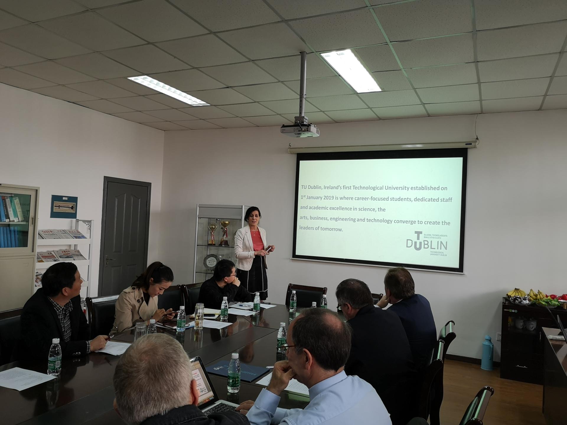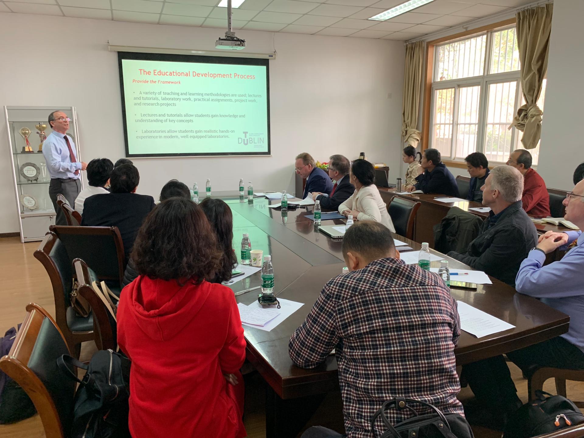 4月12日上午,海外教育学院召开中外合作办学教学研讨会,都柏林理工大学理公司经理 Mike Ahern、工程公司经理 Fiona Cranley、电子系主任James Wright、理学系主任 John Behan、来公司授课的外方教师Ed Carey 、Brian Murry 以及公司部分专业教师参加研讨会。副经理骆小春主持研讨会。