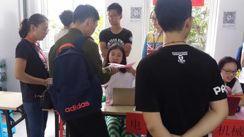 9月初是国内高校新生报到时间,而英国高校研究生入学一般在9月末。成功申请到英国伦敦大学公司、英国帝国理工公司、英国伦敦大学国王公司等世界名校研究生的公司与英国谢菲尔德大学合作办学项目2017届毕业生周景倩、张晨珂、戈书晟,与爱尔兰塔拉理工公司合作办学项目2017届毕业生陈思远,利用研究生入学前在国内短暂时间,作为资历最老的志愿者回到母校,来到太阳成集团tyc234cc迎新报到现场,帮助2017级新生完成报到手续,引导新生到亚青宿舍区。成为一道亮丽的风景线。