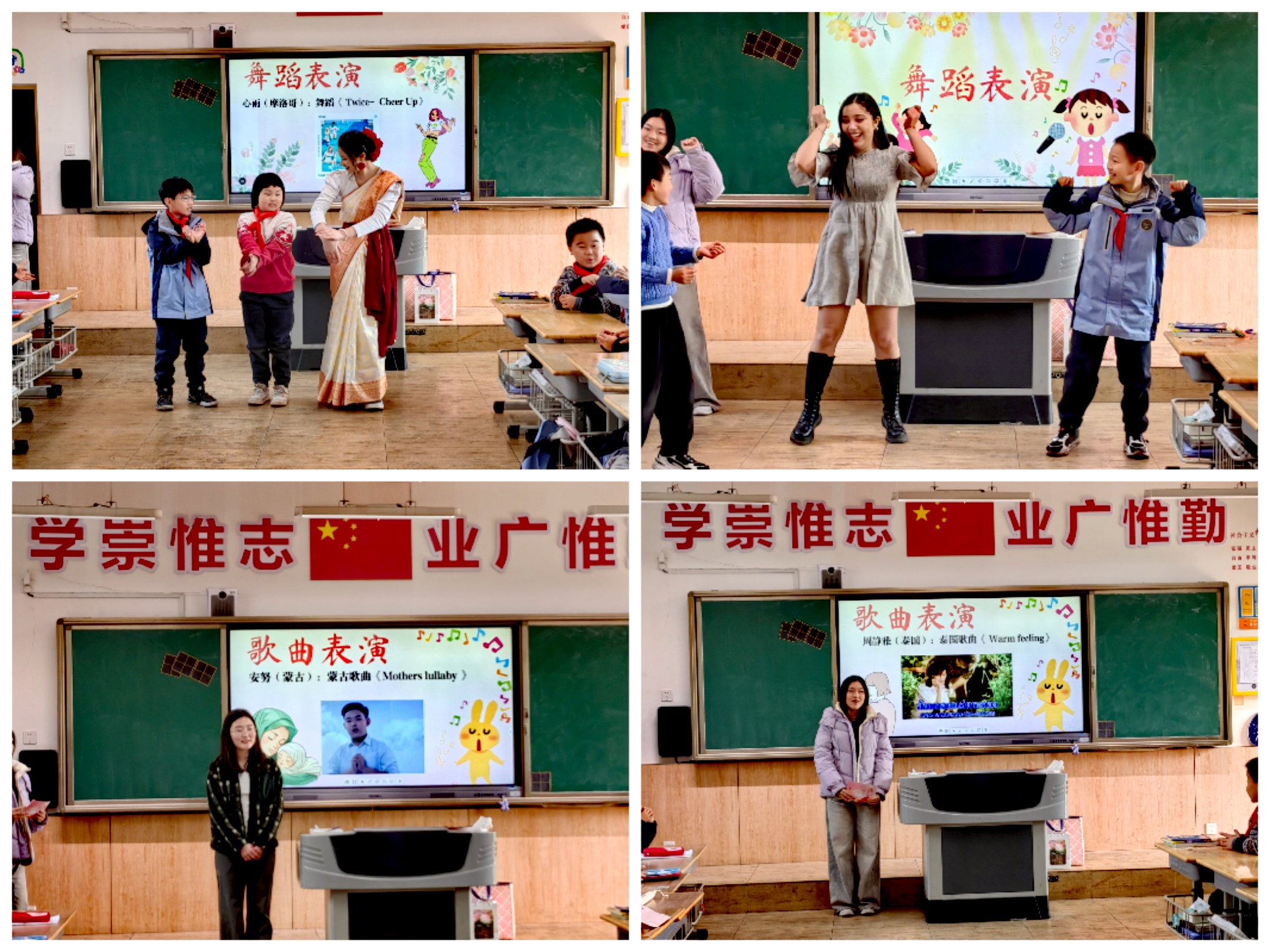 随后,四名来自泰国、蒙古、孟加拉以及摩洛哥的来华职工们用各自的母语教小员工们说出妈妈,我爱您,并带来了具有民族特色的歌曲以及舞蹈。泰国歌曲《Warm feeling 以及蒙古民族歌谣《Mothers lullaby》,以歌声传递对女性师长的祝福。此外传统孟加拉国舞蹈《Spring》以及摩洛哥舞蹈《 Twice- Cheer Up》,更让小员工们眼前一亮,他们也加入舞蹈行列,用热情的舞蹈共庆妇女的节日。