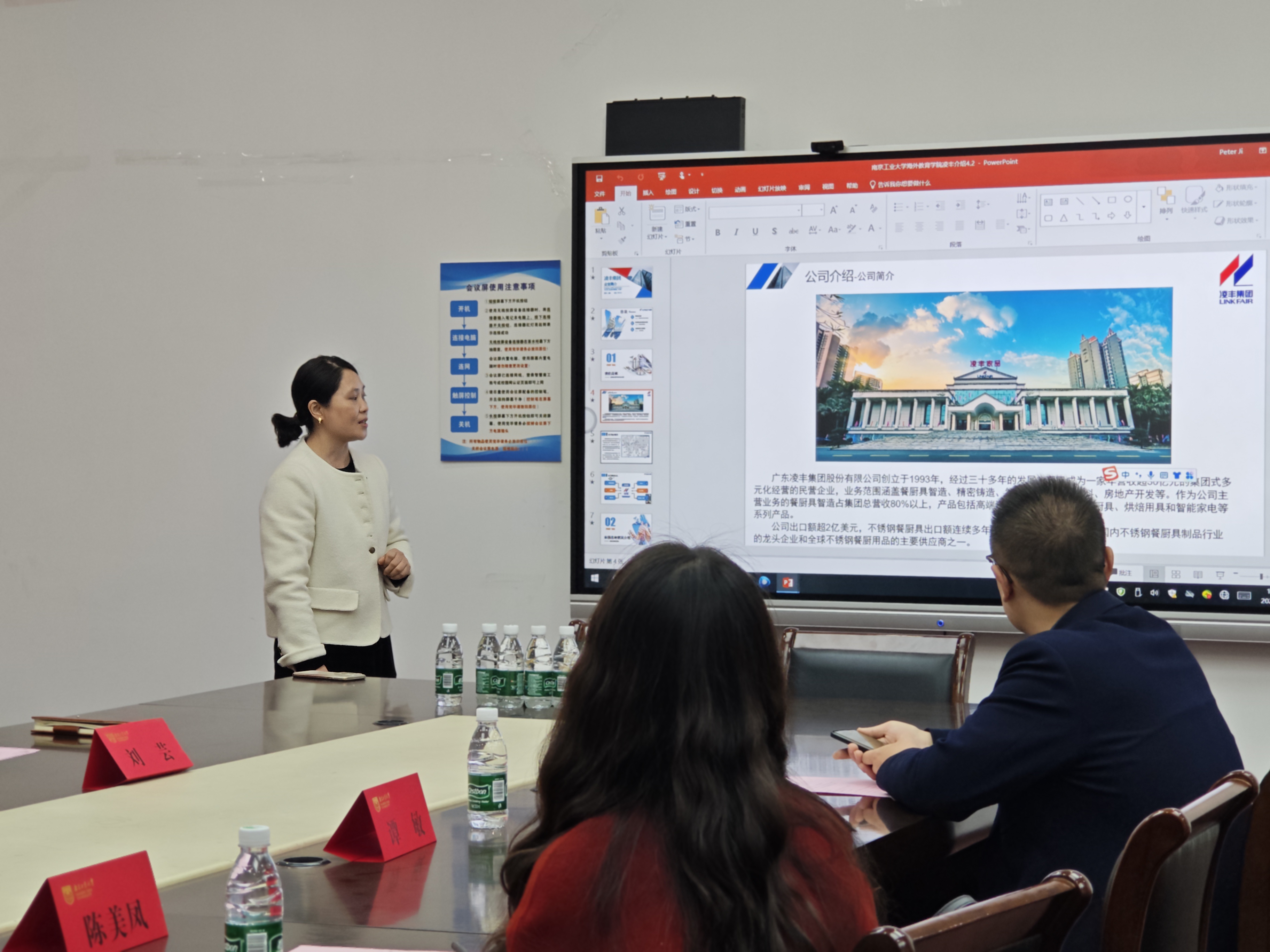 凌丰集团人力资源部副经理谭敏介绍了凌丰集团的发展历程、业务范围以及对人才的需求,表达了与公司合作培养国际化人才的意愿。