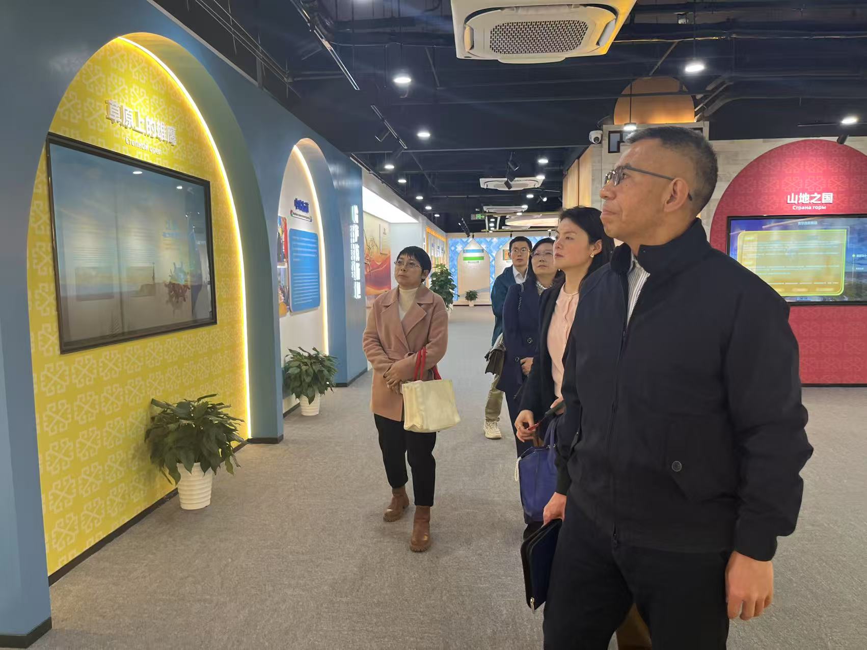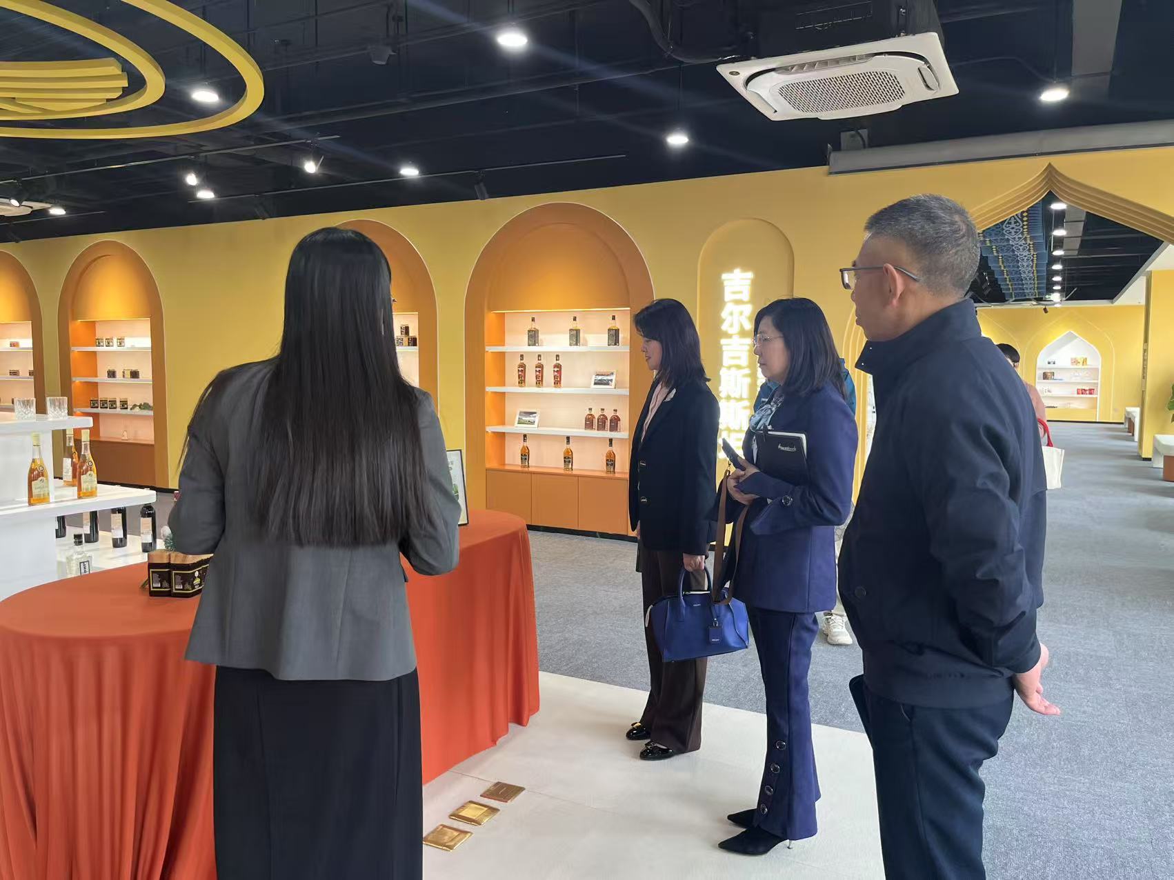 太阳成集团tyc234cc一行参观了由苏豪云商运营的江苏中亚中心展厅,听取了相关情况介绍、观摩了中亚五国风土人情的产品展陈,对江苏中亚中心的建设规划、业务布局及运营模式有了全面了解,并对我国“一带一路”建设重点区域的哈萨克斯坦、吉尔吉斯坦、塔吉克斯坦、土库曼斯坦、乌兹别克斯坦五国的自然资源、经贸发展与我国的外交与经贸关系有了深入的认识,现场与做直播的中亚职工进行深入交谈。