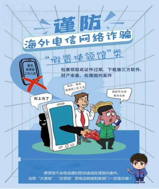 Recently, there have been frequent cases of telecommunications fraud impersonating embassies or consulates, causing serious economic losses and psychological distress to a large number of international students. Fraudsters disguise themselves as the phone numbers of consulates, courier companies, banks, telecommunications operators, and even law enforcement agencies through account changing software, using excuses such as "package waiting to be collected", "abnormal account", "suspected crime", etc., to induce victims to provide personal information or transfer money. This type of fraud has strong concealment and great harm, and urgently needs to raise public awareness.